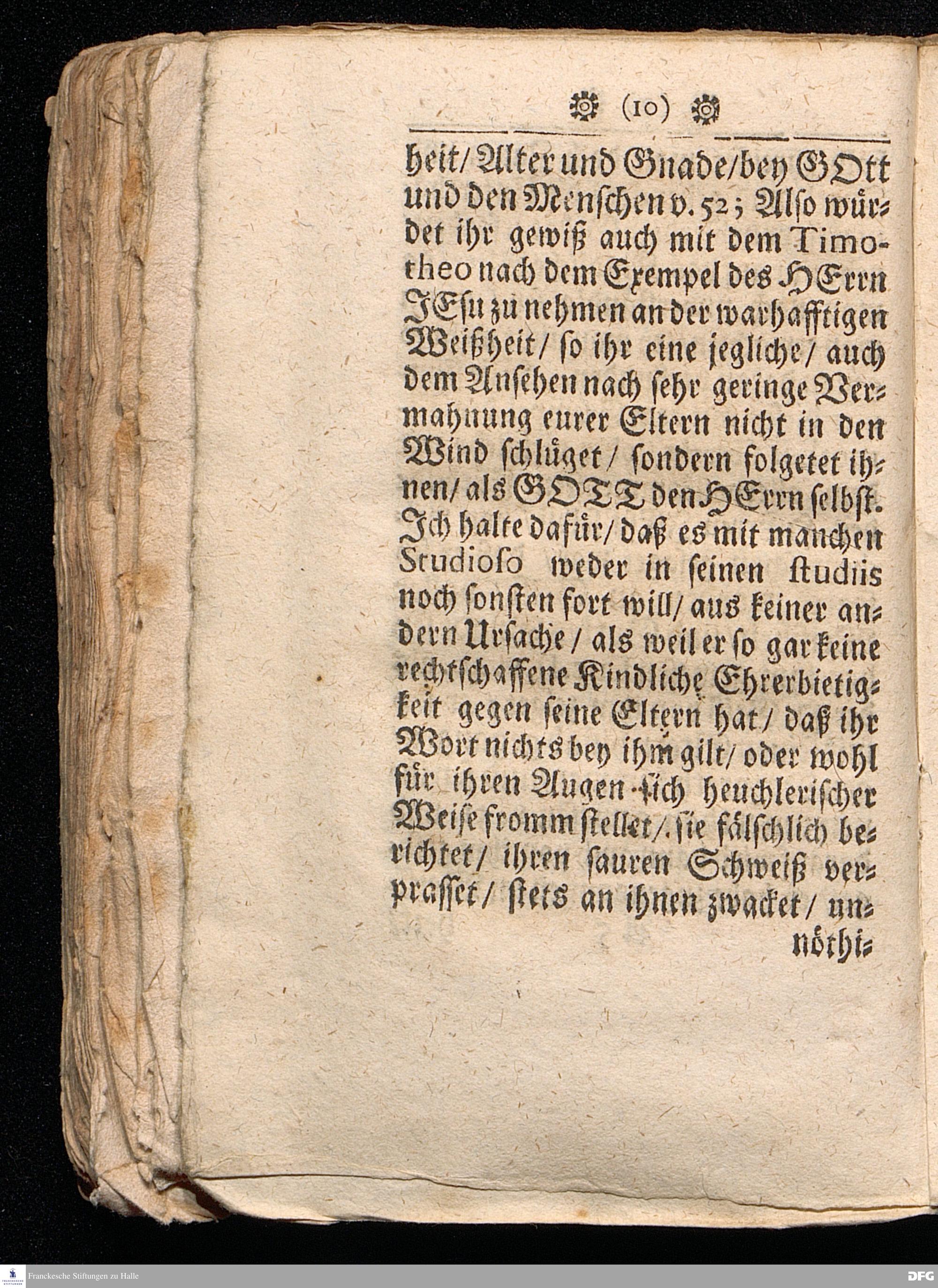 Timotheus Zum Fürbilde Allen Theologiæ Studiosis dargestellet von M.Aug.Hermann Francken / S.Theol.Prof.P.Ord.& Past.Glauch. Editio tertia. [Bibelzitat.] Halle / verlegts Joh.Friedrich Zeitler 1704.