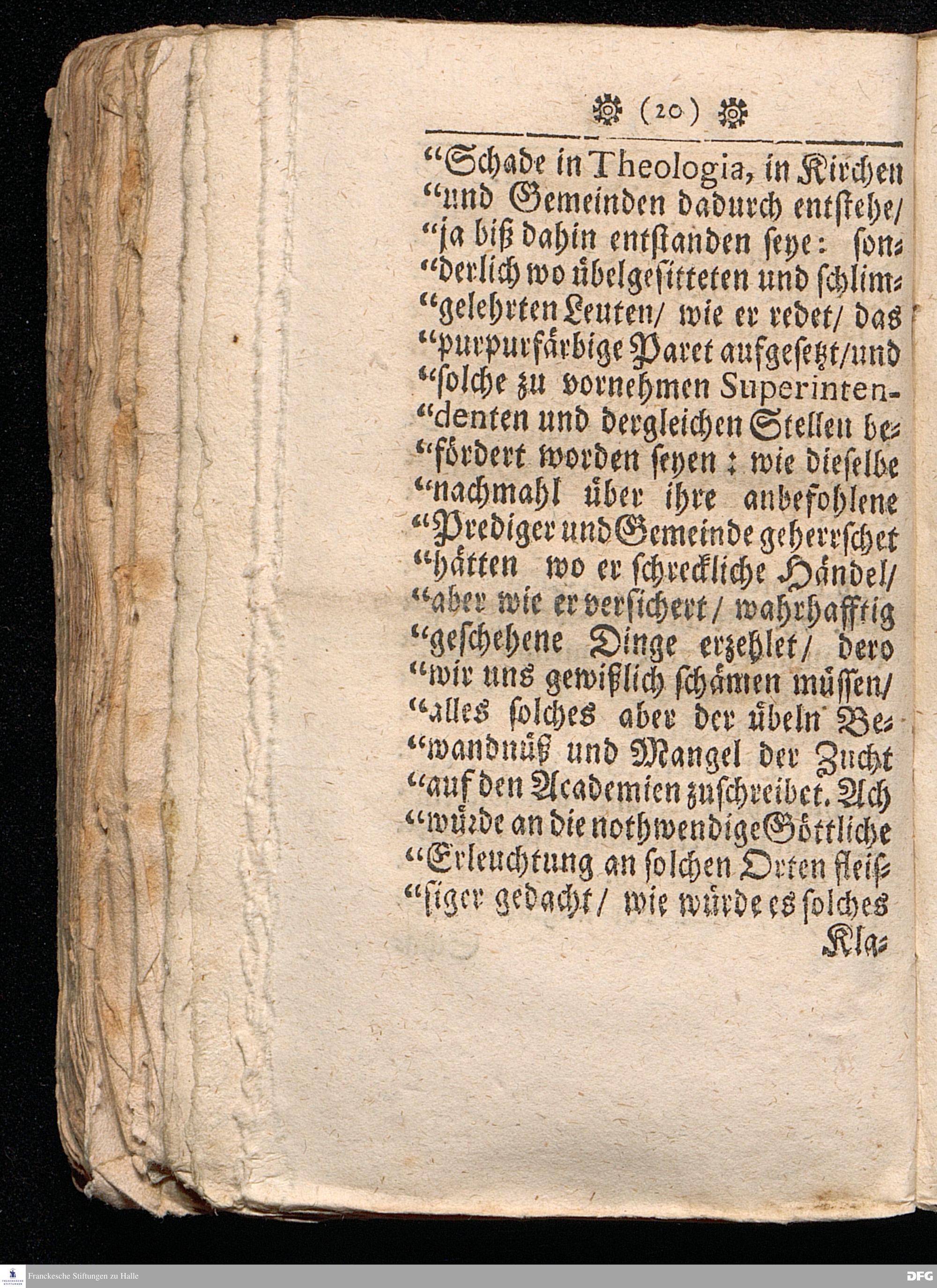 Timotheus Zum Fürbilde Allen Theologiæ Studiosis dargestellet von M.Aug.Hermann Francken / S.Theol.Prof.P.Ord.& Past.Glauch. Editio tertia. [Bibelzitat.] Halle / verlegts Joh.Friedrich Zeitler 1704.