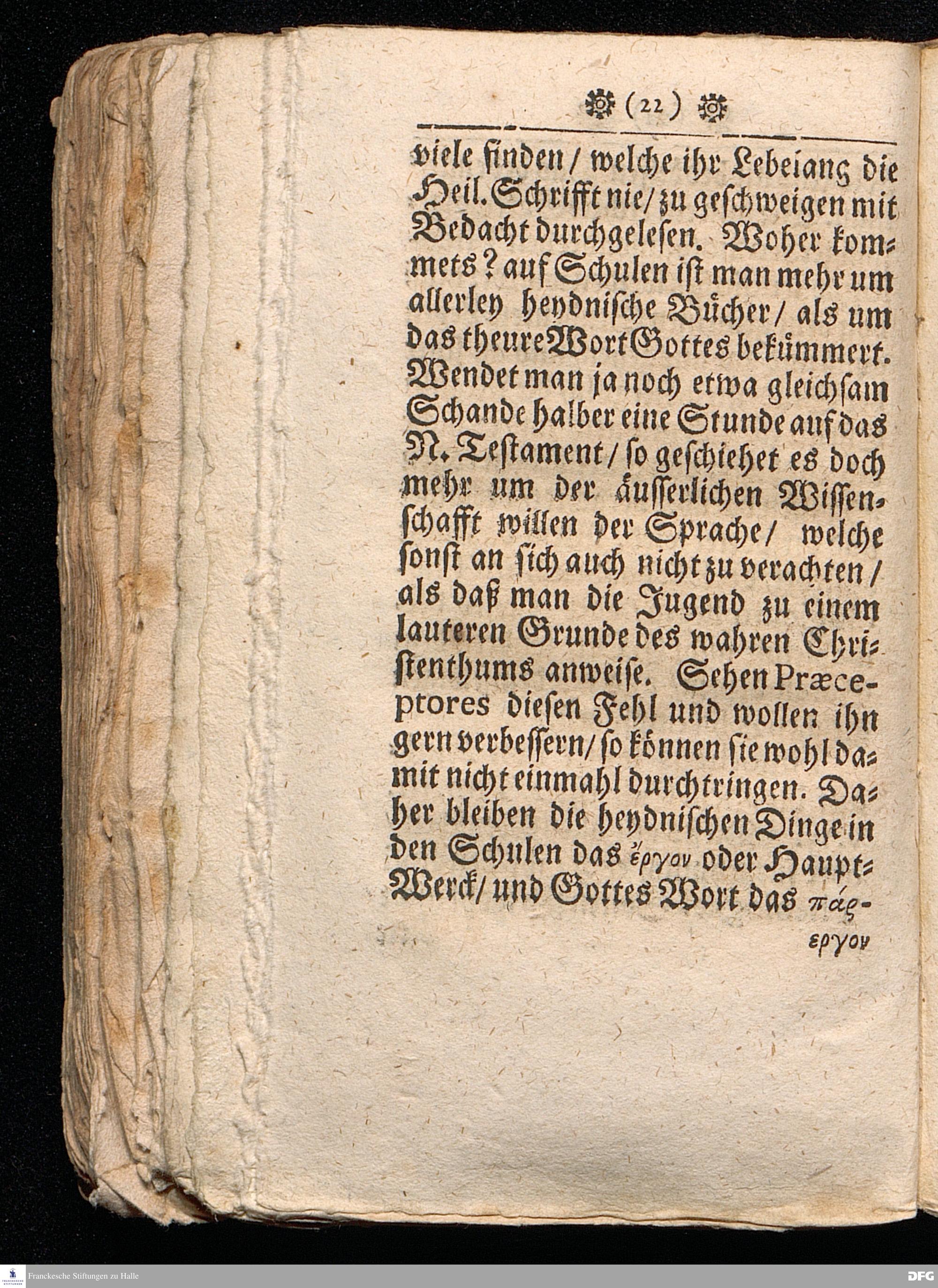 Timotheus Zum Fürbilde Allen Theologiæ Studiosis dargestellet von M.Aug.Hermann Francken / S.Theol.Prof.P.Ord.& Past.Glauch. Editio tertia. [Bibelzitat.] Halle / verlegts Joh.Friedrich Zeitler 1704.