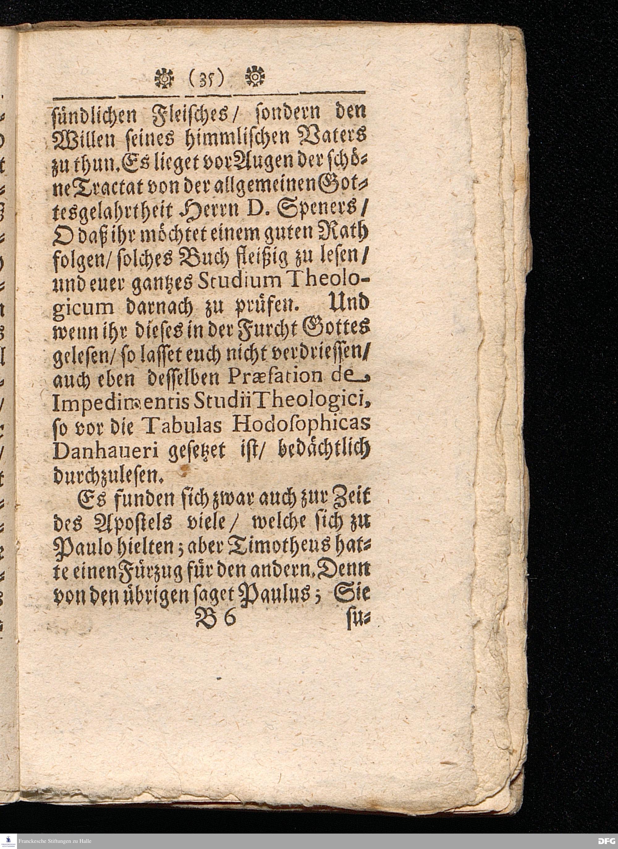 Timotheus Zum Fürbilde Allen Theologiæ Studiosis dargestellet von M.Aug.Hermann Francken / S.Theol.Prof.P.Ord.& Past.Glauch. Editio tertia. [Bibelzitat.] Halle / verlegts Joh.Friedrich Zeitler 1704.
