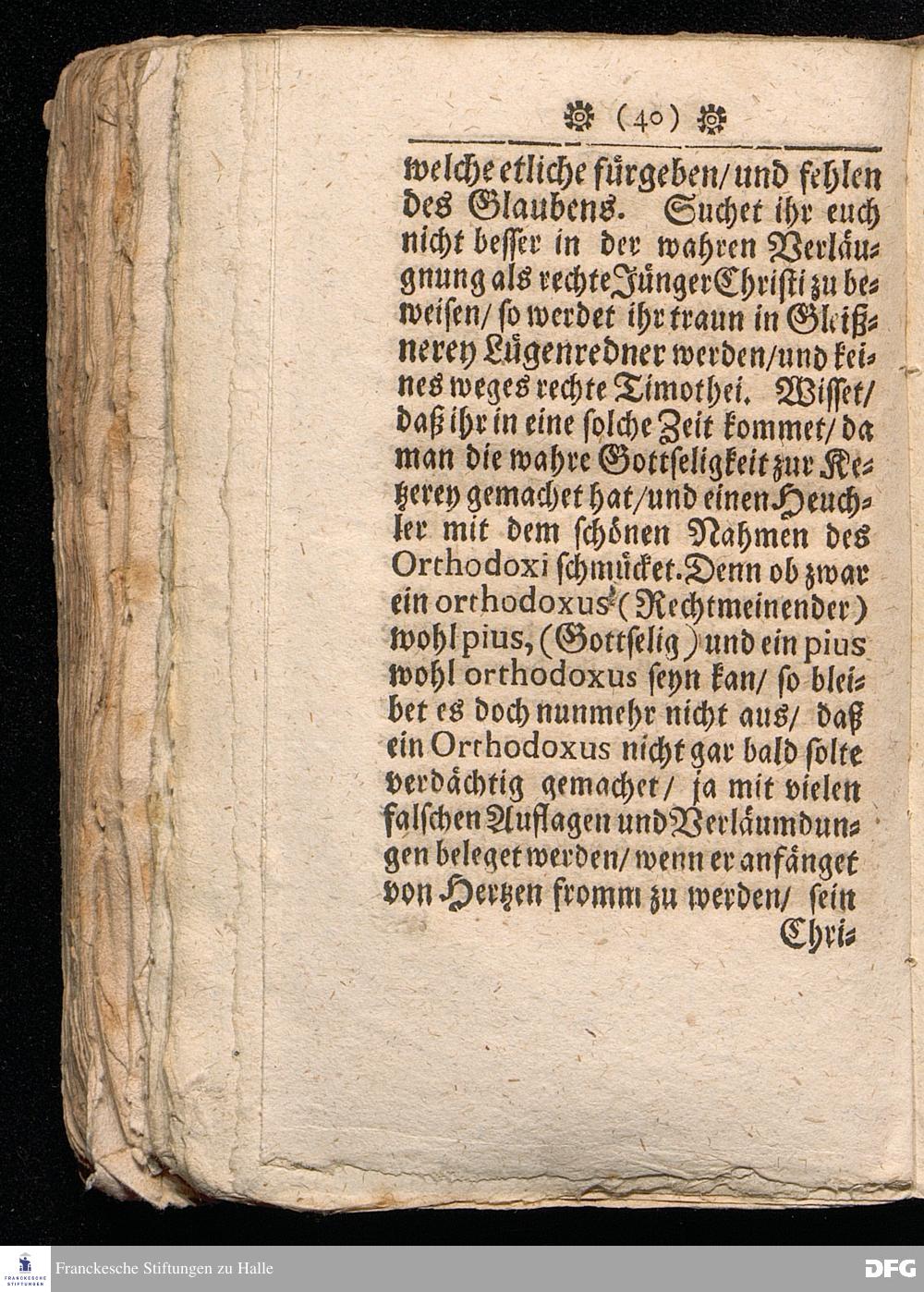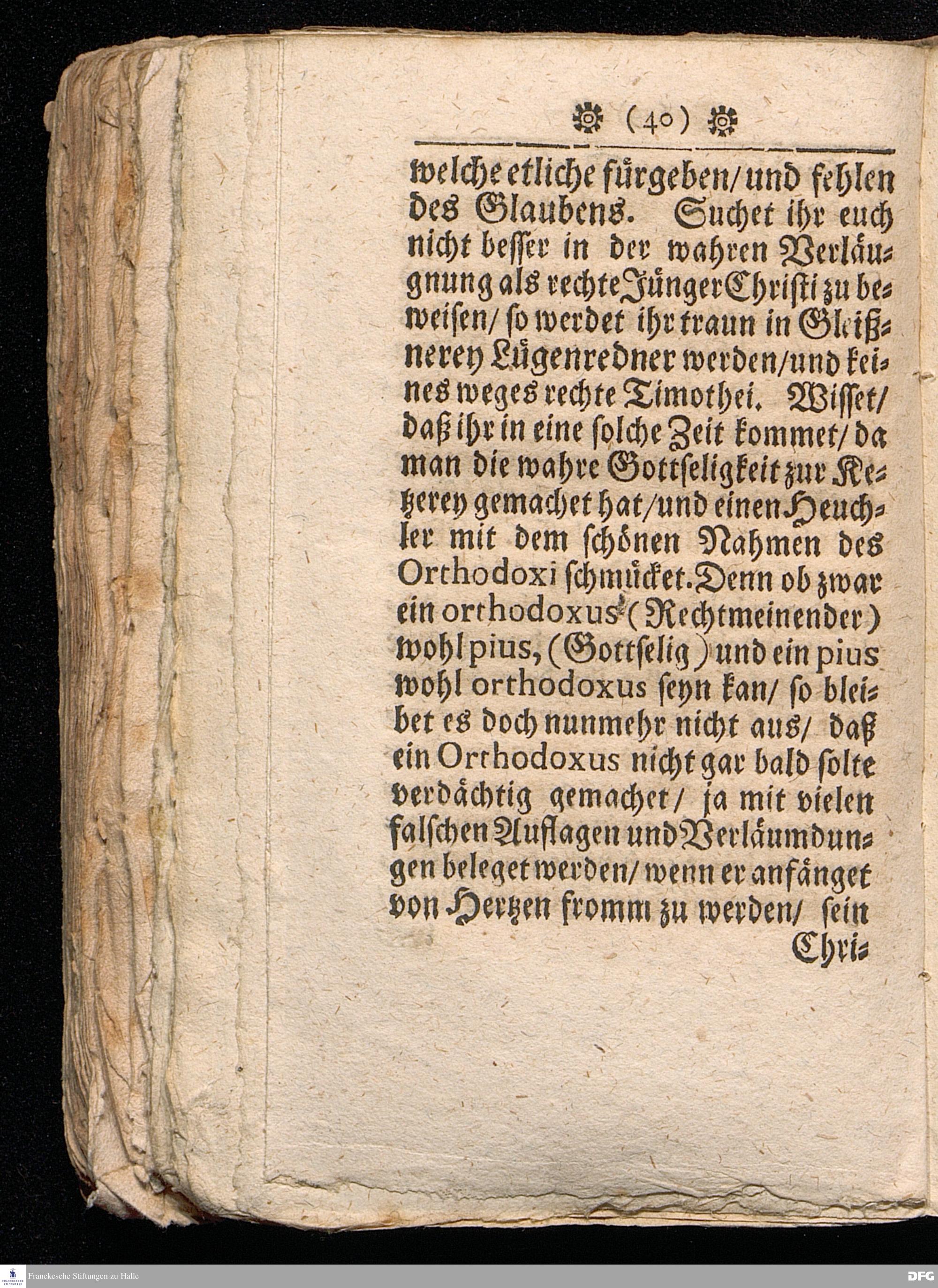 Timotheus Zum Fürbilde Allen Theologiæ Studiosis dargestellet von M.Aug.Hermann Francken / S.Theol.Prof.P.Ord.& Past.Glauch. Editio tertia. [Bibelzitat.] Halle / verlegts Joh.Friedrich Zeitler 1704.