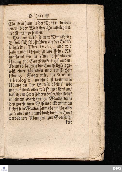 Timotheus Zum Fürbilde Allen Theologiæ Studiosis dargestellet von M.Aug.Hermann Francken / S.Theol.Prof.P.Ord.& Past.Glauch. Editio tertia. [Bibelzitat.] Halle / verlegts Joh.Friedrich Zeitler 1704.
