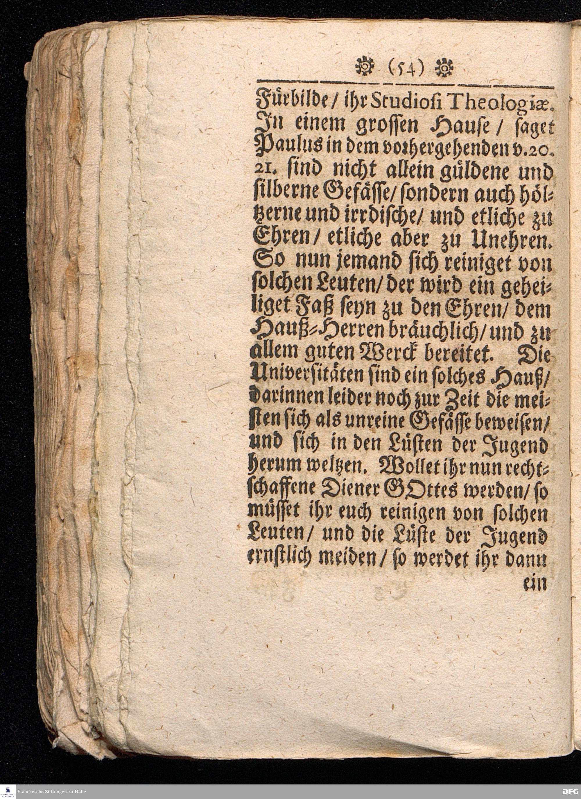 Timotheus Zum Fürbilde Allen Theologiæ Studiosis dargestellet von M.Aug.Hermann Francken / S.Theol.Prof.P.Ord.& Past.Glauch. Editio tertia. [Bibelzitat.] Halle / verlegts Joh.Friedrich Zeitler 1704.