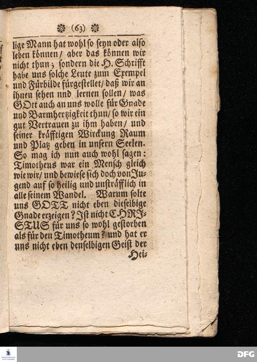 Timotheus Zum Fürbilde Allen Theologiæ Studiosis dargestellet von M.Aug.Hermann Francken / S.Theol.Prof.P.Ord.& Past.Glauch. Editio tertia. [Bibelzitat.] Halle / verlegts Joh.Friedrich Zeitler 1704.