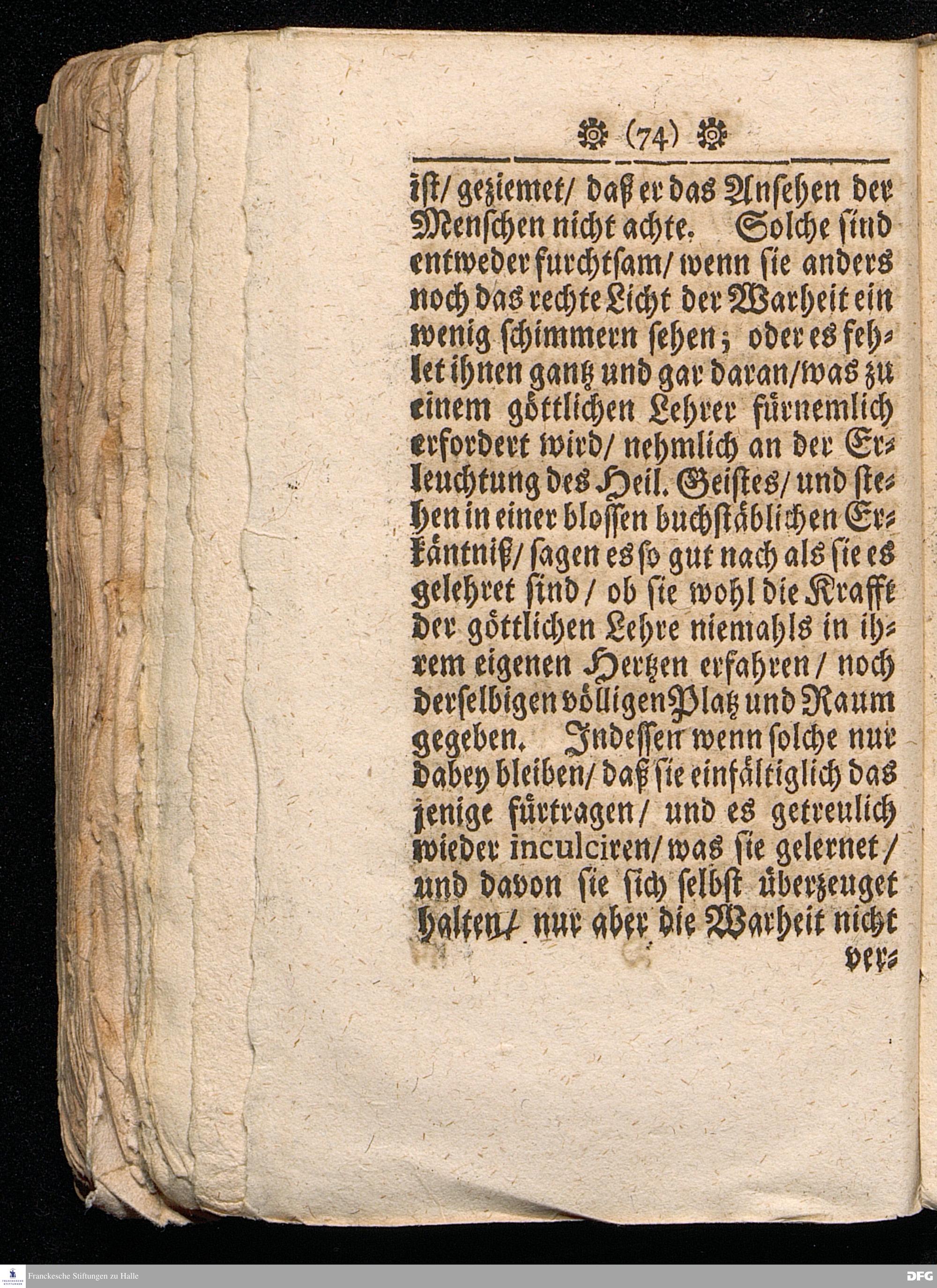 Timotheus Zum Fürbilde Allen Theologiæ Studiosis dargestellet von M.Aug.Hermann Francken / S.Theol.Prof.P.Ord.& Past.Glauch. Editio tertia. [Bibelzitat.] Halle / verlegts Joh.Friedrich Zeitler 1704.