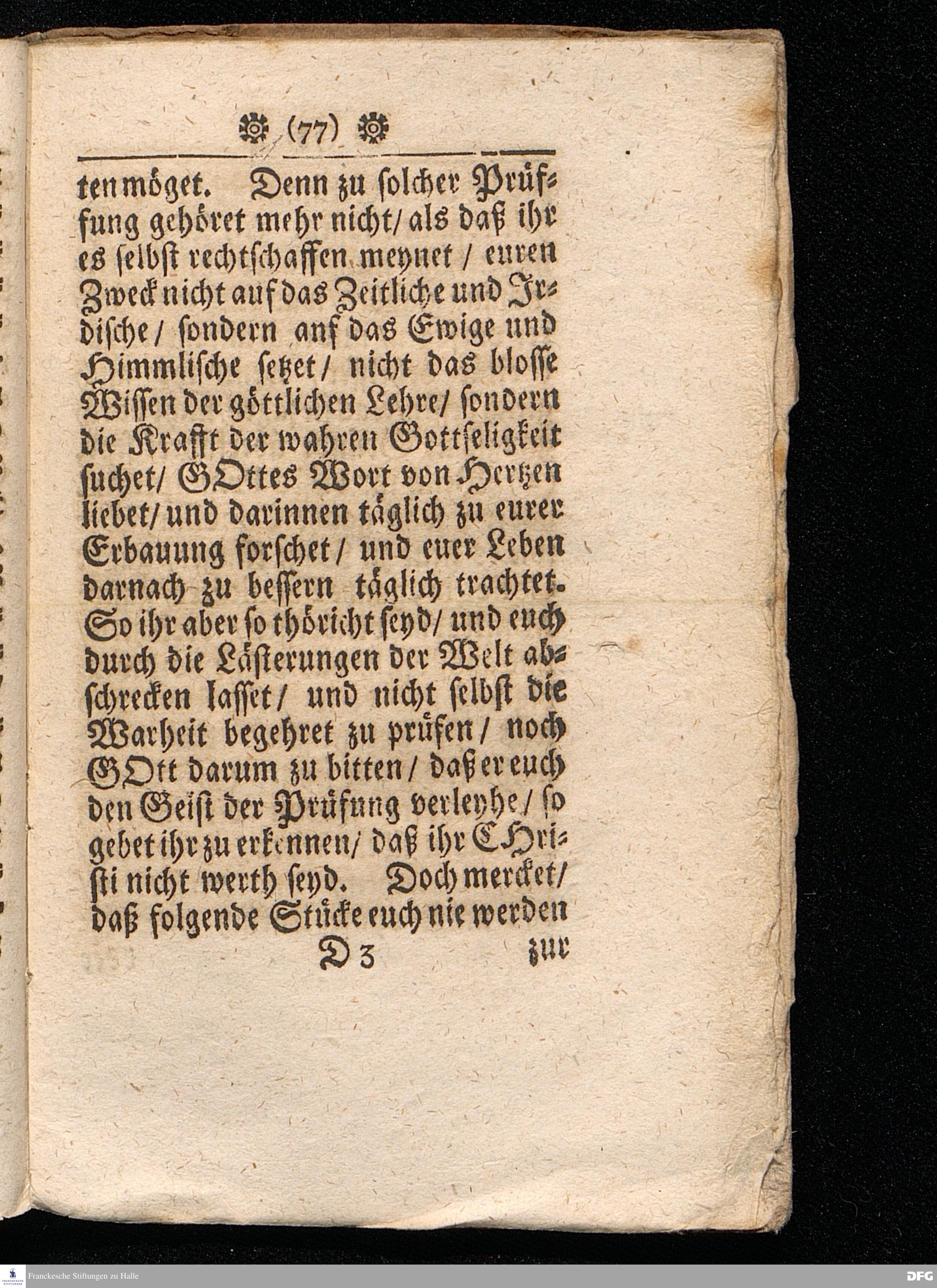 Timotheus Zum Fürbilde Allen Theologiæ Studiosis dargestellet von M.Aug.Hermann Francken / S.Theol.Prof.P.Ord.& Past.Glauch. Editio tertia. [Bibelzitat.] Halle / verlegts Joh.Friedrich Zeitler 1704.