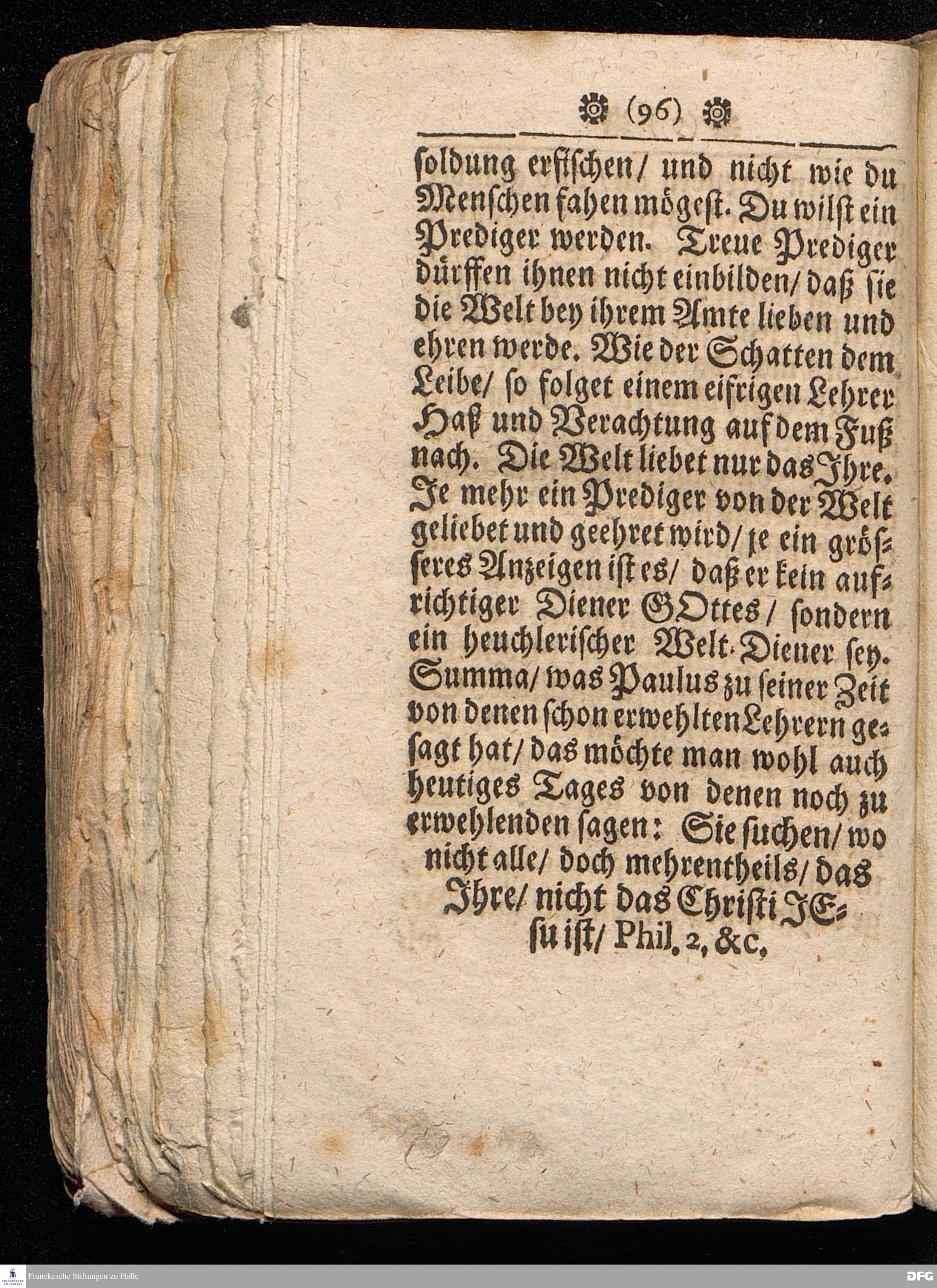 Timotheus Zum Fürbilde Allen Theologiæ Studiosis dargestellet von M.Aug.Hermann Francken / S.Theol.Prof.P.Ord.& Past.Glauch. Editio tertia. [Bibelzitat.] Halle / verlegts Joh.Friedrich Zeitler 1704.