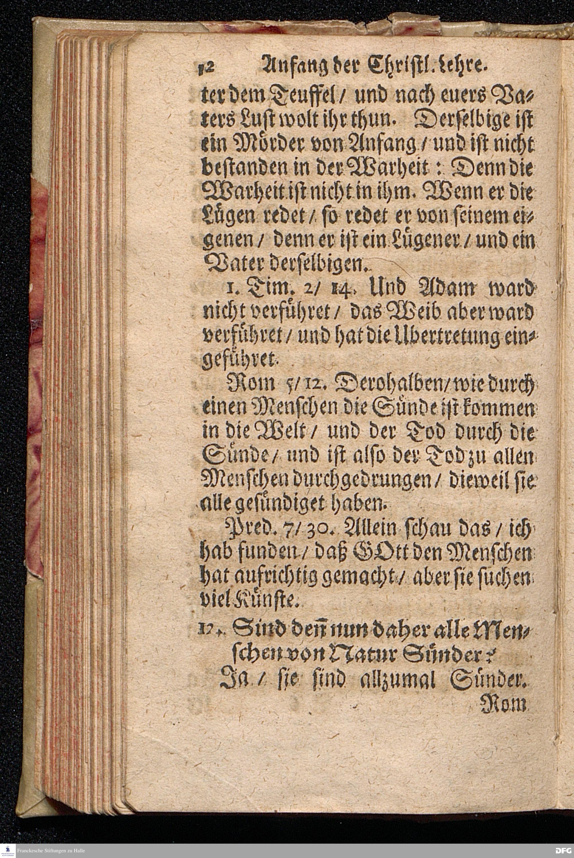 Anfang Der Christl. Lehre Zum Gebrauch für die Gantz Unwissende Und Unfähige Vieles zu lernen. HALLE / In Verleg.des Waysen=Hauses. Anno 1704.