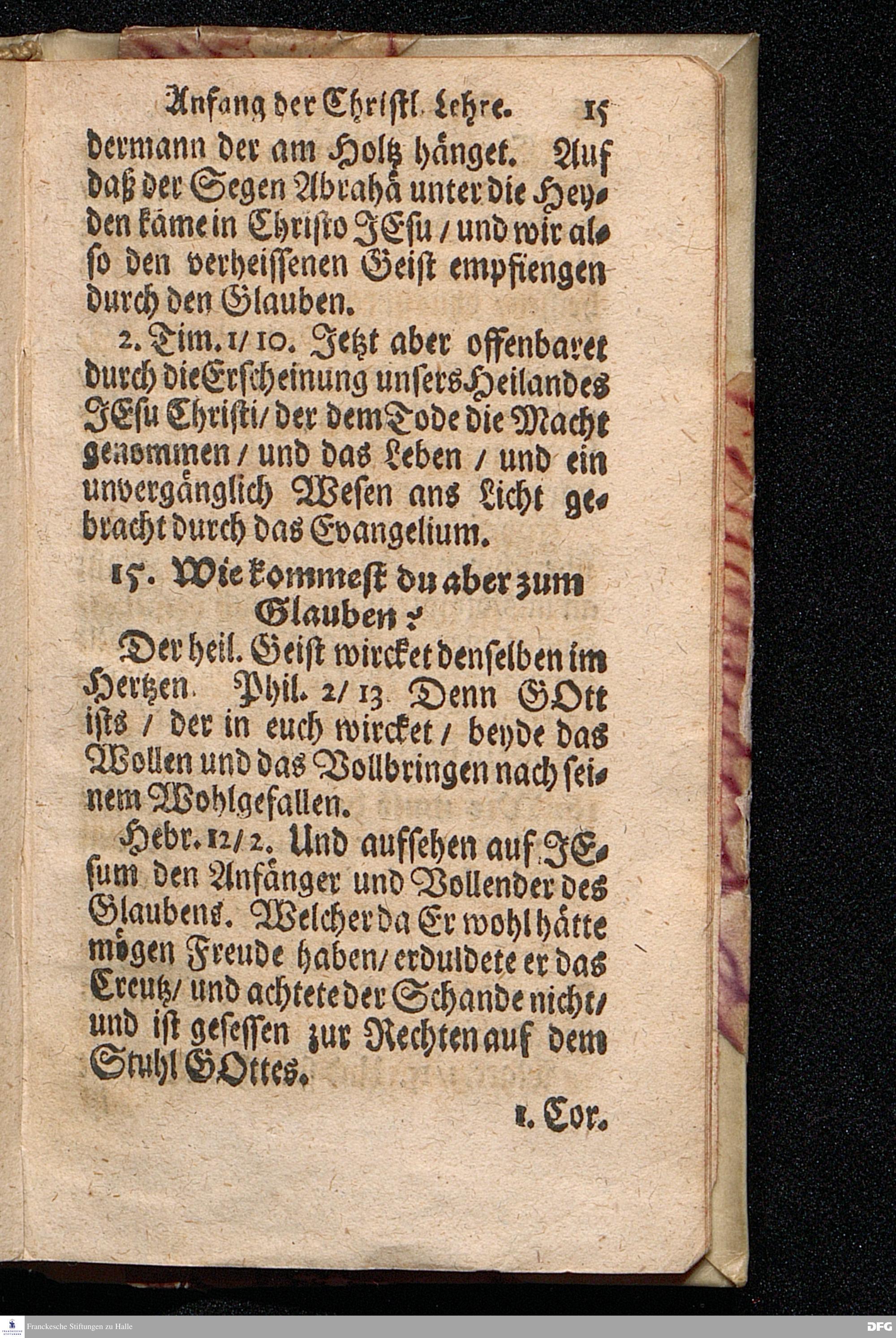 Anfang Der Christl. Lehre Zum Gebrauch für die Gantz Unwissende Und Unfähige Vieles zu lernen. HALLE / In Verleg.des Waysen=Hauses. Anno 1704.