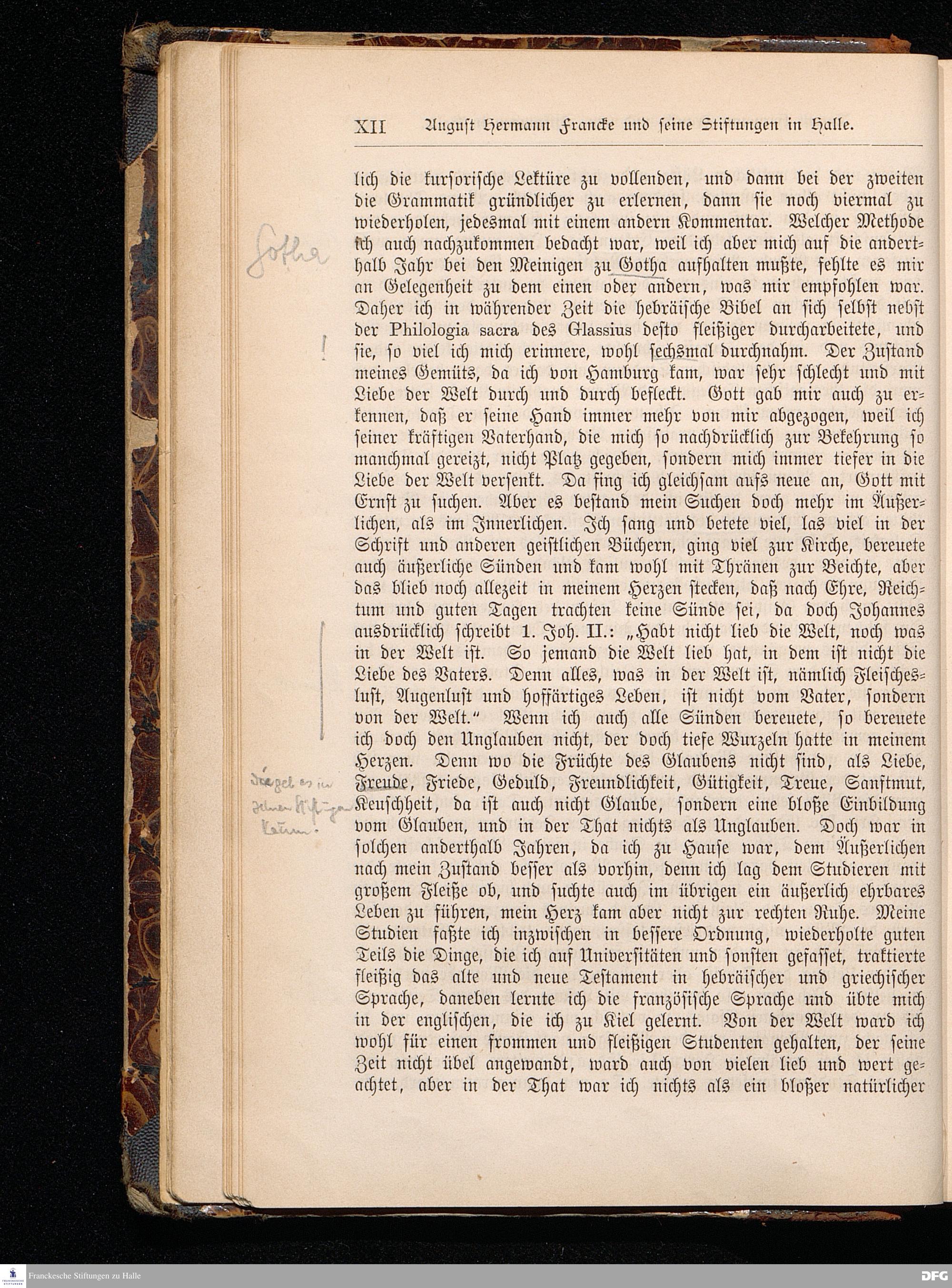 A.H.Francke's Pädagogische Schriften. Nebst der Darstellung seines Lebens und seiner Stiftungen herausgegeben von D. G[ustav] Kramer, Geh.Regierungsrat. Zweite, durchgesehene und vervollständigte Ausgabe. Langensalza, Druck und Verlag von Hermann Beyer & Söhne. 1885.