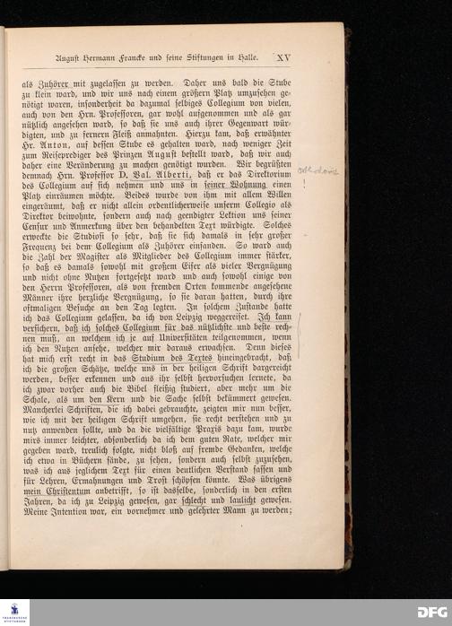 A.H.Francke's Pädagogische Schriften. Nebst der Darstellung seines Lebens und seiner Stiftungen herausgegeben von D. G[ustav] Kramer, Geh.Regierungsrat. Zweite, durchgesehene und vervollständigte Ausgabe. Langensalza, Druck und Verlag von Hermann Beyer & Söhne. 1885.