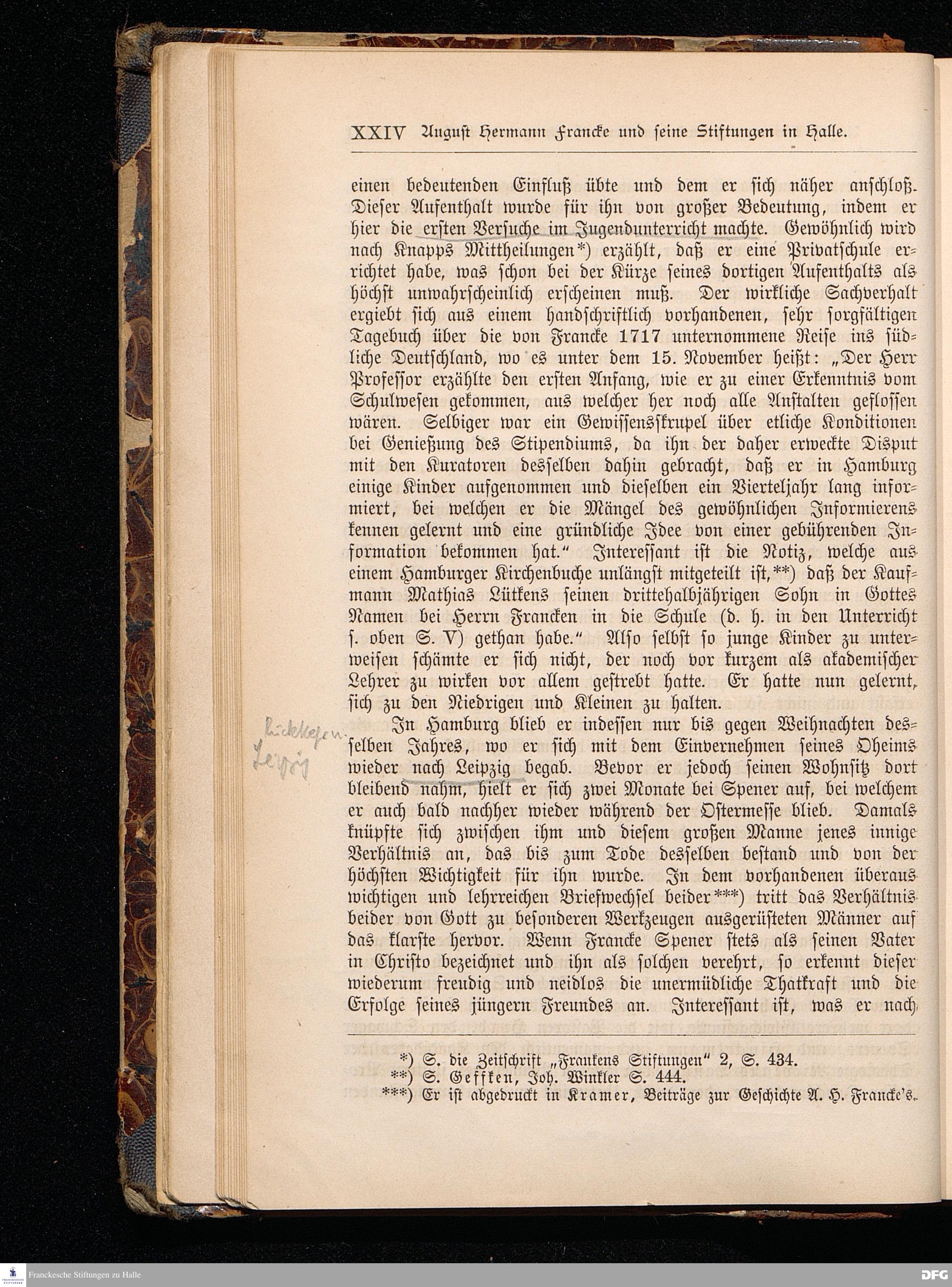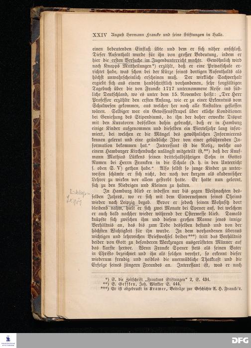 A.H.Francke's Pädagogische Schriften. Nebst der Darstellung seines Lebens und seiner Stiftungen herausgegeben von D. G[ustav] Kramer, Geh.Regierungsrat. Zweite, durchgesehene und vervollständigte Ausgabe. Langensalza, Druck und Verlag von Hermann Beyer & Söhne. 1885.