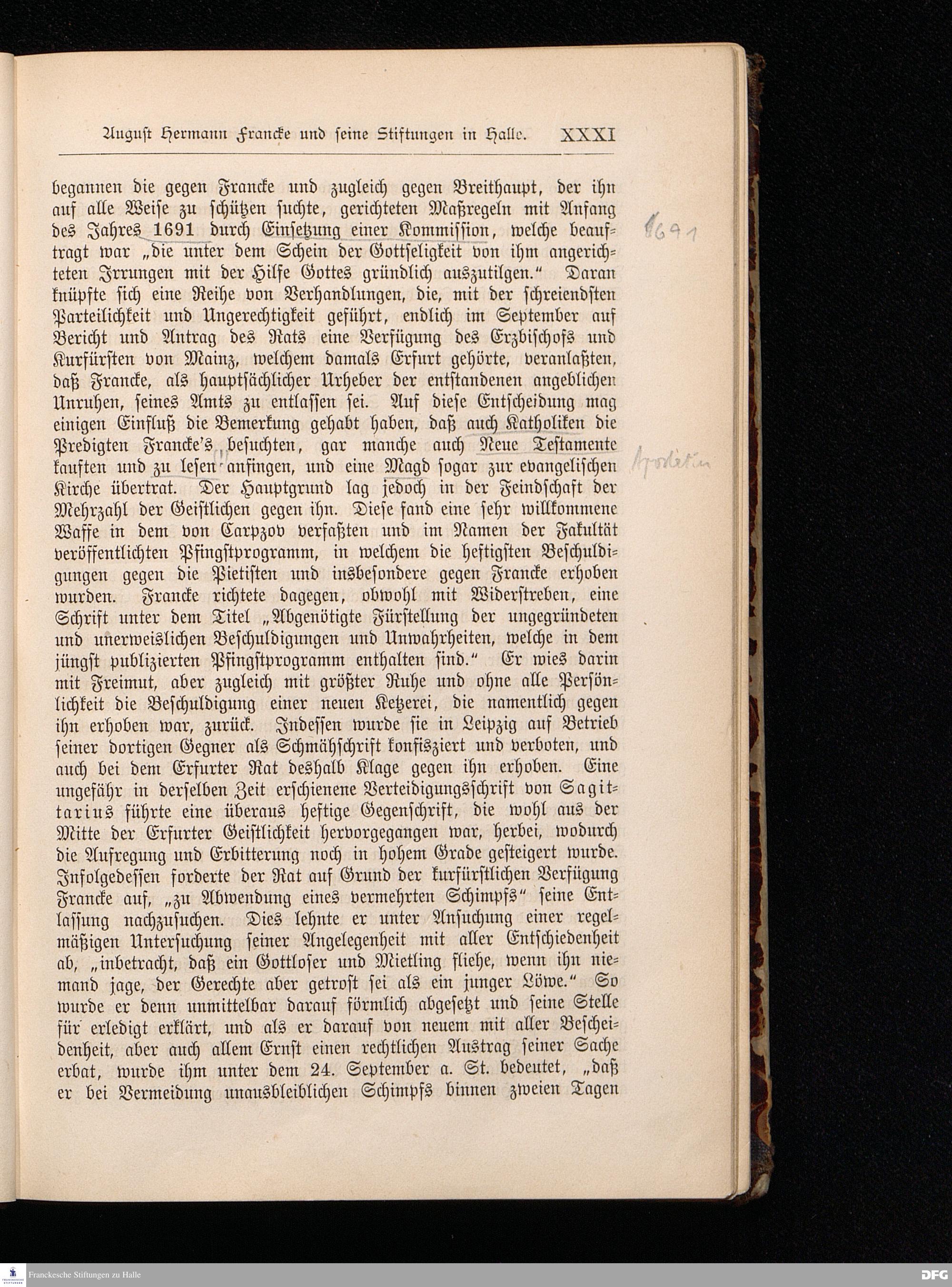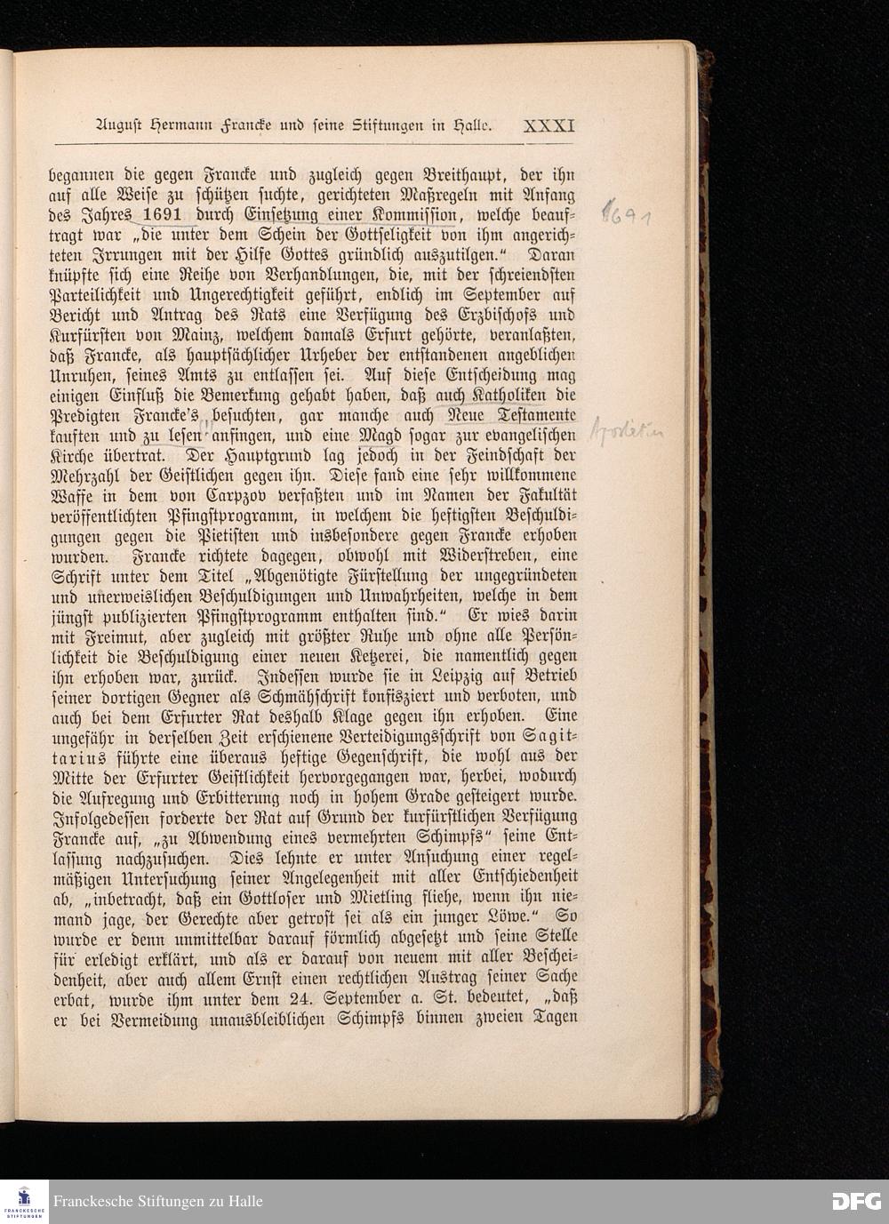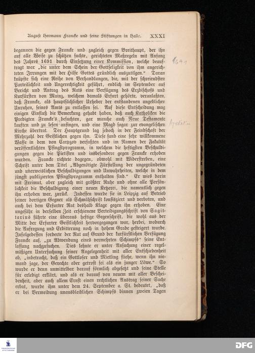 A.H.Francke's Pädagogische Schriften. Nebst der Darstellung seines Lebens und seiner Stiftungen herausgegeben von D. G[ustav] Kramer, Geh.Regierungsrat. Zweite, durchgesehene und vervollständigte Ausgabe. Langensalza, Druck und Verlag von Hermann Beyer & Söhne. 1885.