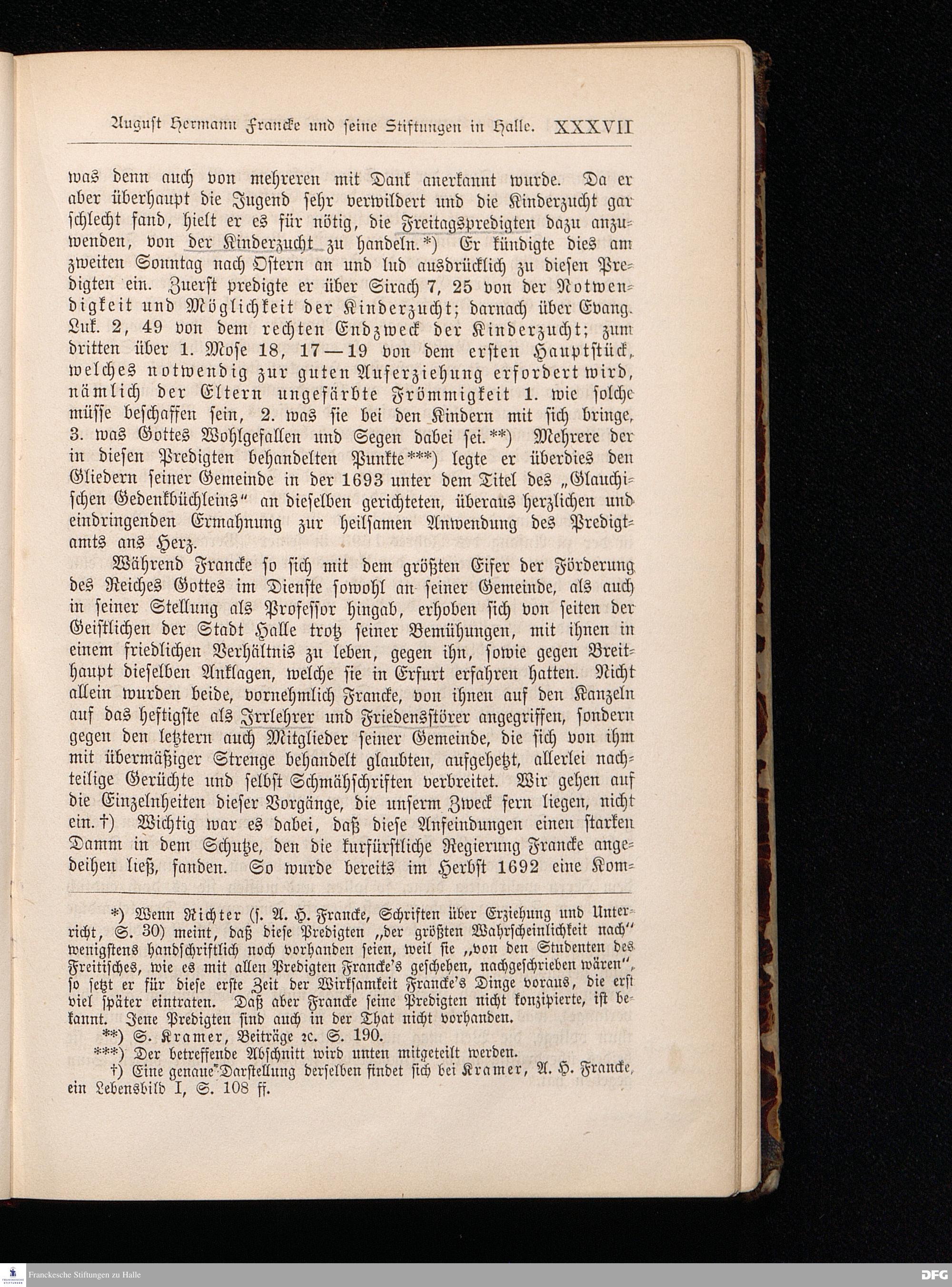 A.H.Francke's Pädagogische Schriften. Nebst der Darstellung seines Lebens und seiner Stiftungen herausgegeben von D. G[ustav] Kramer, Geh.Regierungsrat. Zweite, durchgesehene und vervollständigte Ausgabe. Langensalza, Druck und Verlag von Hermann Beyer & Söhne. 1885.