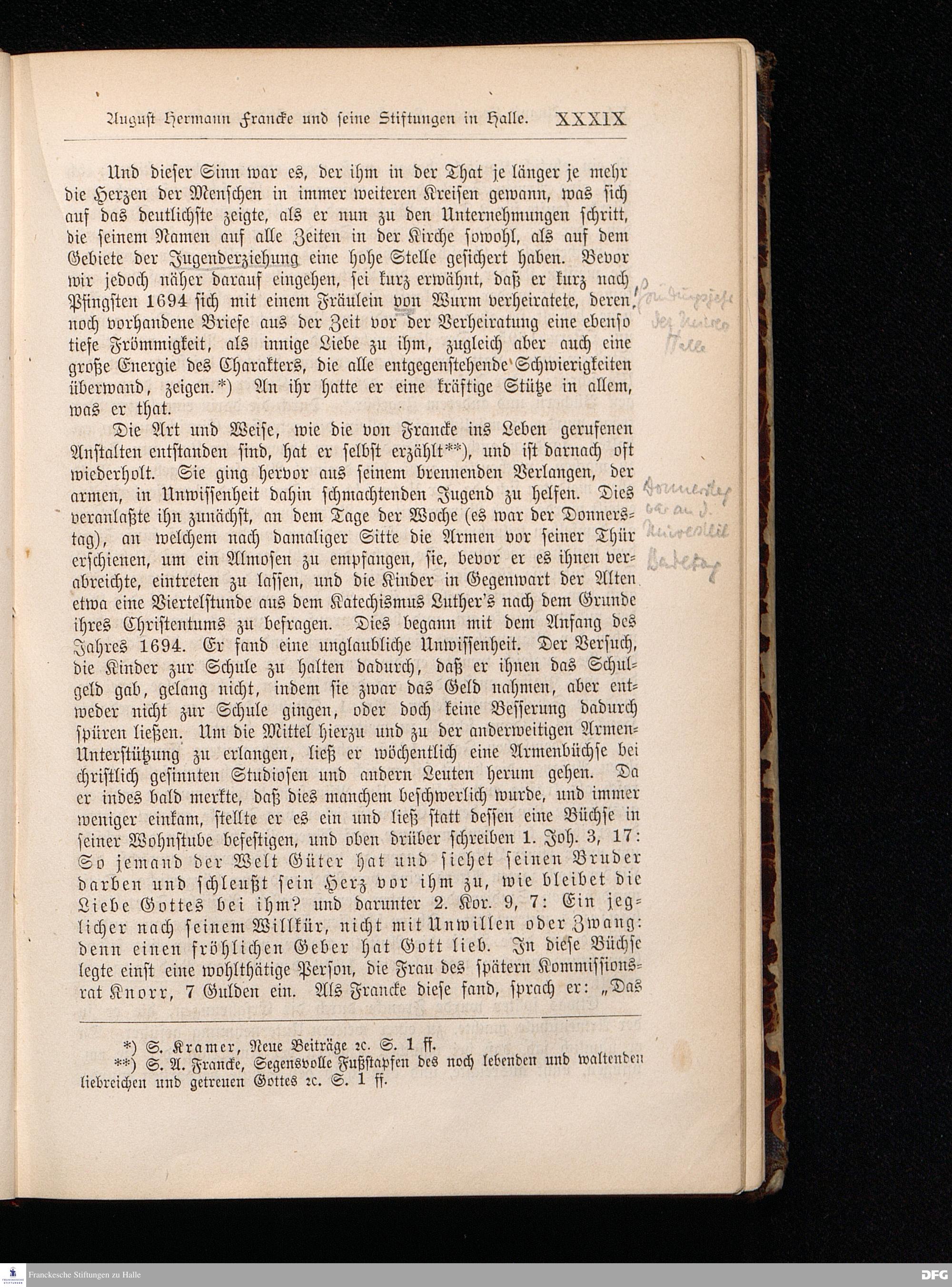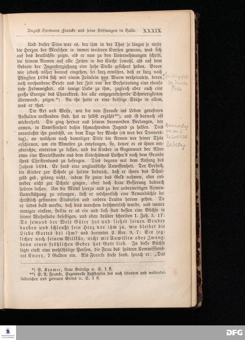 A.H.Francke's Pädagogische Schriften. Nebst der Darstellung seines Lebens und seiner Stiftungen herausgegeben von D. G[ustav] Kramer, Geh.Regierungsrat. Zweite, durchgesehene und vervollständigte Ausgabe. Langensalza, Druck und Verlag von Hermann Beyer & Söhne. 1885.