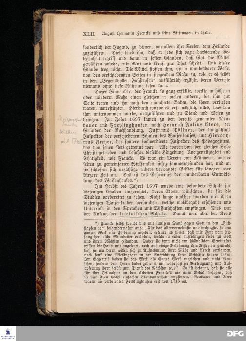 A.H.Francke's Pädagogische Schriften. Nebst der Darstellung seines Lebens und seiner Stiftungen herausgegeben von D. G[ustav] Kramer, Geh.Regierungsrat. Zweite, durchgesehene und vervollständigte Ausgabe. Langensalza, Druck und Verlag von Hermann Beyer & Söhne. 1885.