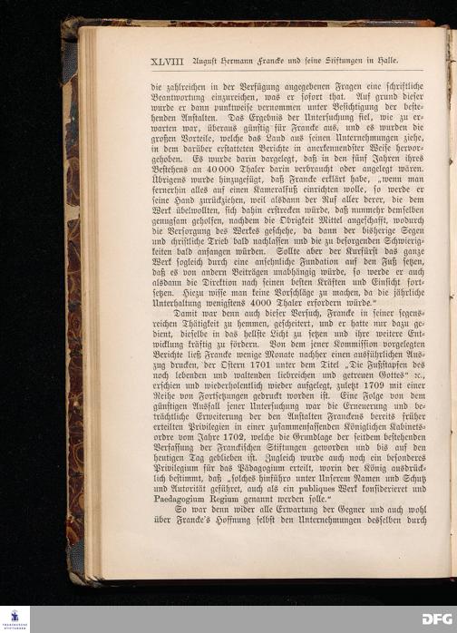 A.H.Francke's Pädagogische Schriften. Nebst der Darstellung seines Lebens und seiner Stiftungen herausgegeben von D. G[ustav] Kramer, Geh.Regierungsrat. Zweite, durchgesehene und vervollständigte Ausgabe. Langensalza, Druck und Verlag von Hermann Beyer & Söhne. 1885.