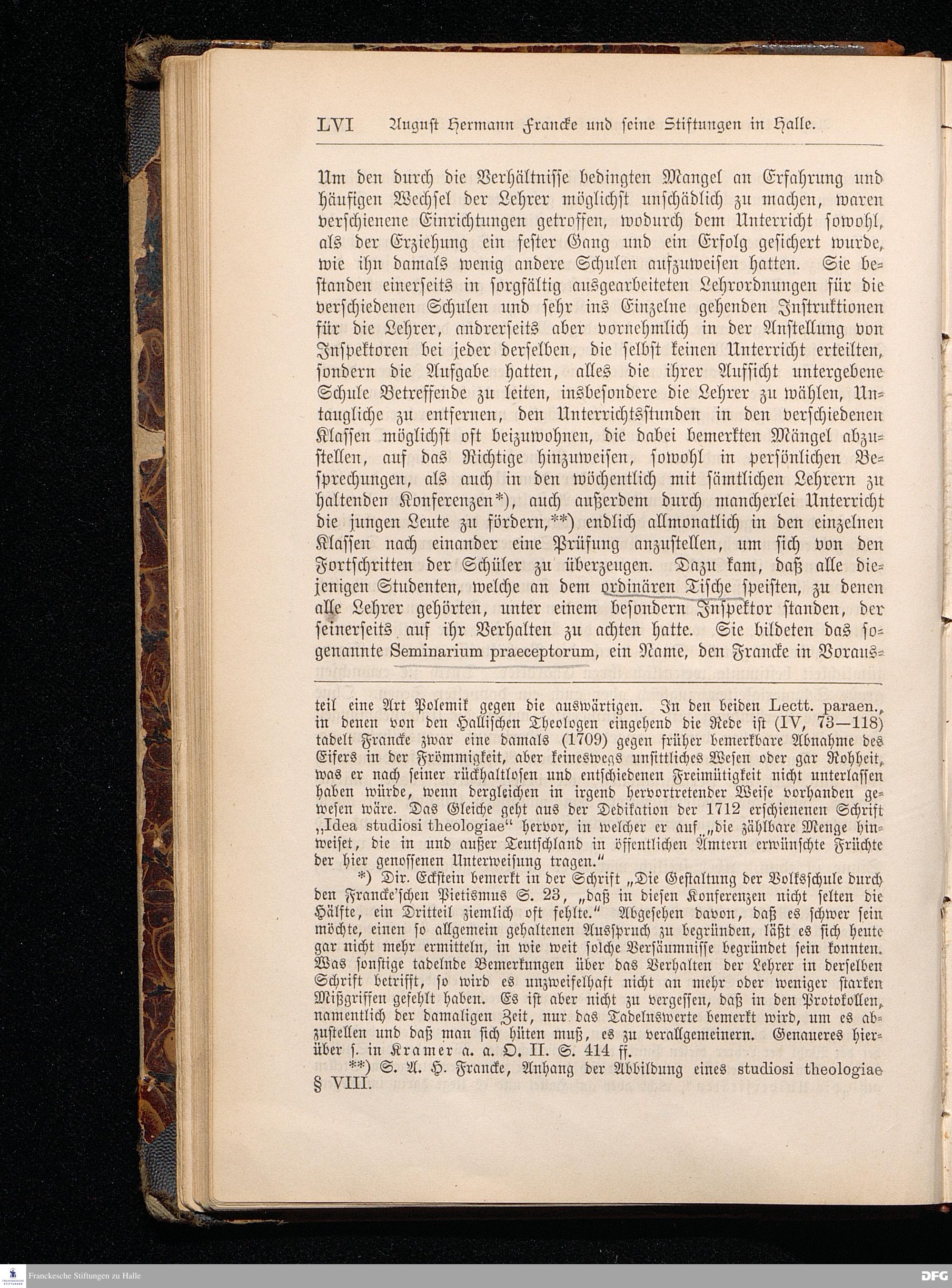 A.H.Francke's Pädagogische Schriften. Nebst der Darstellung seines Lebens und seiner Stiftungen herausgegeben von D. G[ustav] Kramer, Geh.Regierungsrat. Zweite, durchgesehene und vervollständigte Ausgabe. Langensalza, Druck und Verlag von Hermann Beyer & Söhne. 1885.