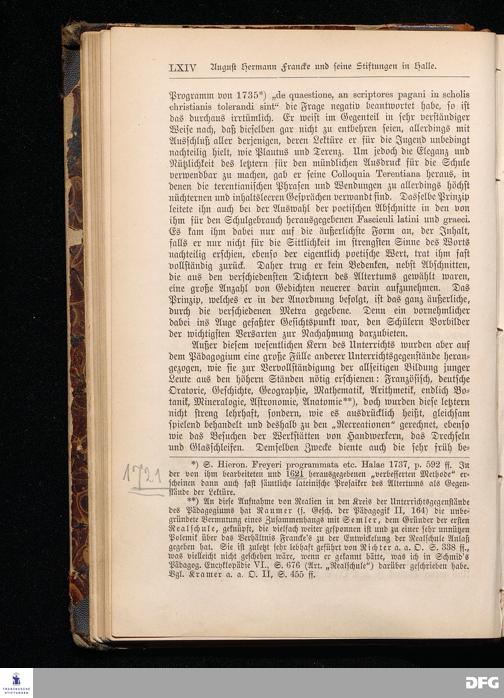 A.H.Francke's Pädagogische Schriften. Nebst der Darstellung seines Lebens und seiner Stiftungen herausgegeben von D. G[ustav] Kramer, Geh.Regierungsrat. Zweite, durchgesehene und vervollständigte Ausgabe. Langensalza, Druck und Verlag von Hermann Beyer & Söhne. 1885.