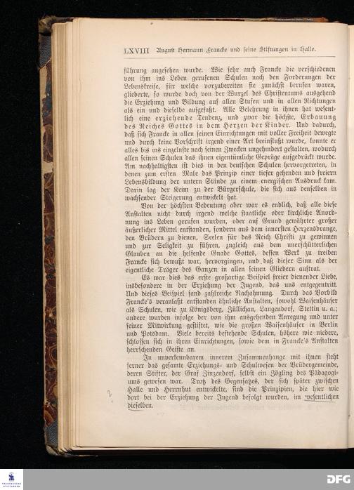 A.H.Francke's Pädagogische Schriften. Nebst der Darstellung seines Lebens und seiner Stiftungen herausgegeben von D. G[ustav] Kramer, Geh.Regierungsrat. Zweite, durchgesehene und vervollständigte Ausgabe. Langensalza, Druck und Verlag von Hermann Beyer & Söhne. 1885.