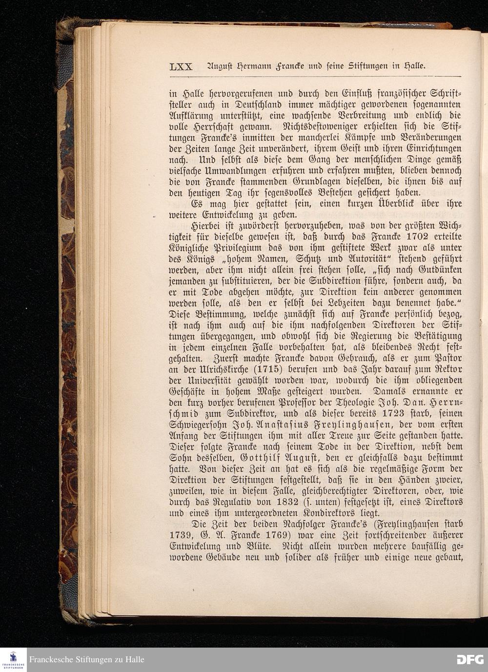 A.H.Francke's Pädagogische Schriften. Nebst der Darstellung seines Lebens und seiner Stiftungen herausgegeben von D. G[ustav] Kramer, Geh.Regierungsrat. Zweite, durchgesehene und vervollständigte Ausgabe. Langensalza, Druck und Verlag von Hermann Beyer & Söhne. 1885.