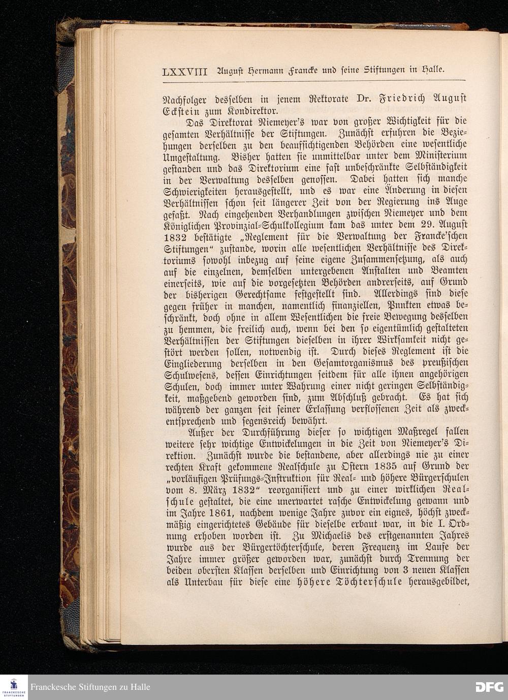 A.H.Francke's Pädagogische Schriften. Nebst der Darstellung seines Lebens und seiner Stiftungen herausgegeben von D. G[ustav] Kramer, Geh.Regierungsrat. Zweite, durchgesehene und vervollständigte Ausgabe. Langensalza, Druck und Verlag von Hermann Beyer & Söhne. 1885.