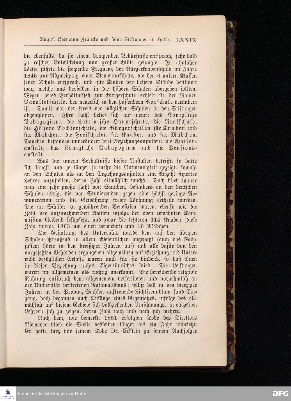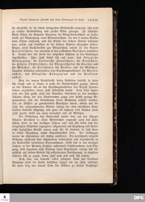 A.H.Francke's Pädagogische Schriften. Nebst der Darstellung seines Lebens und seiner Stiftungen herausgegeben von D. G[ustav] Kramer, Geh.Regierungsrat. Zweite, durchgesehene und vervollständigte Ausgabe. Langensalza, Druck und Verlag von Hermann Beyer & Söhne. 1885.