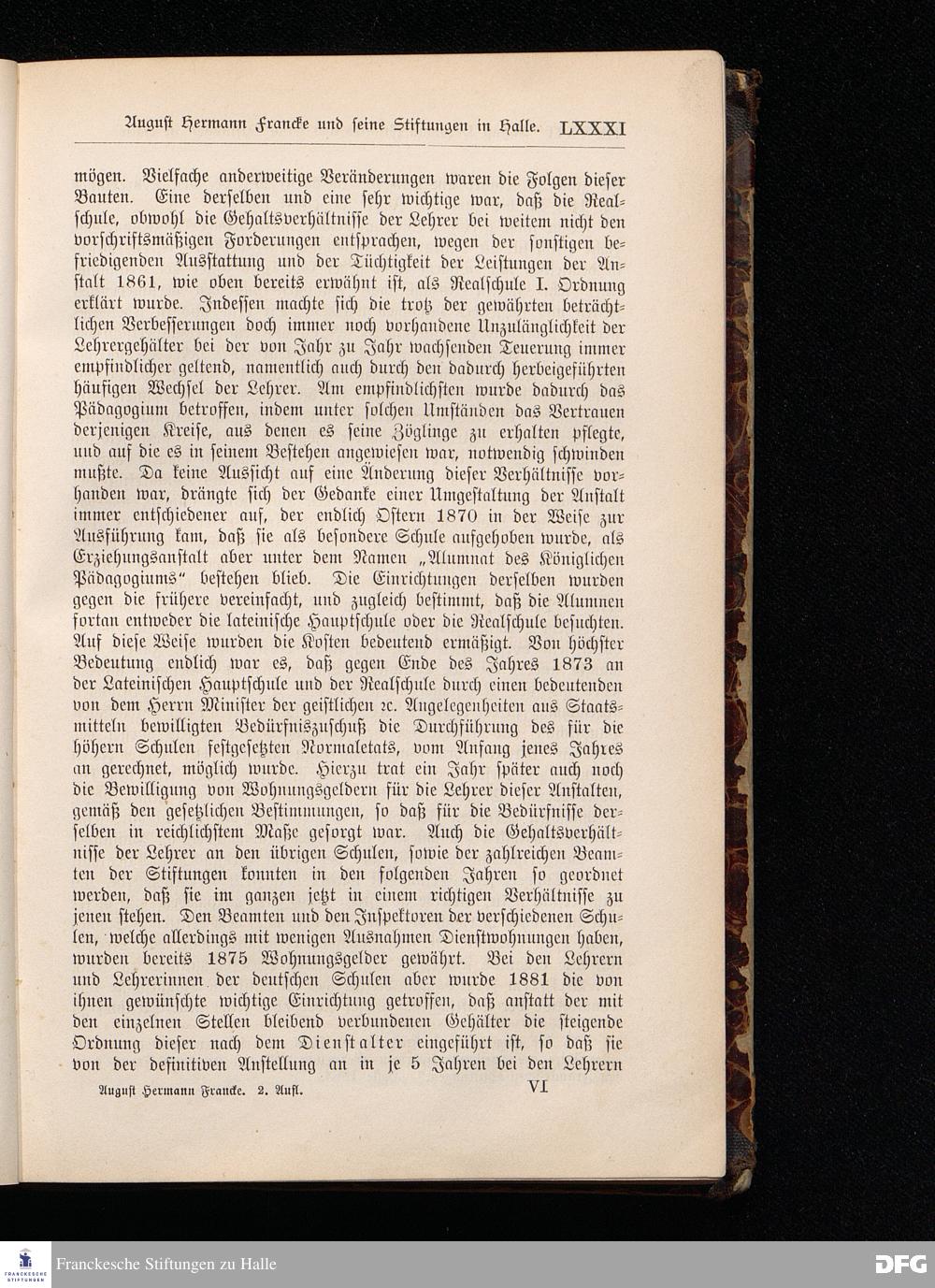 A.H.Francke's Pädagogische Schriften. Nebst der Darstellung seines Lebens und seiner Stiftungen herausgegeben von D. G[ustav] Kramer, Geh.Regierungsrat. Zweite, durchgesehene und vervollständigte Ausgabe. Langensalza, Druck und Verlag von Hermann Beyer & Söhne. 1885.