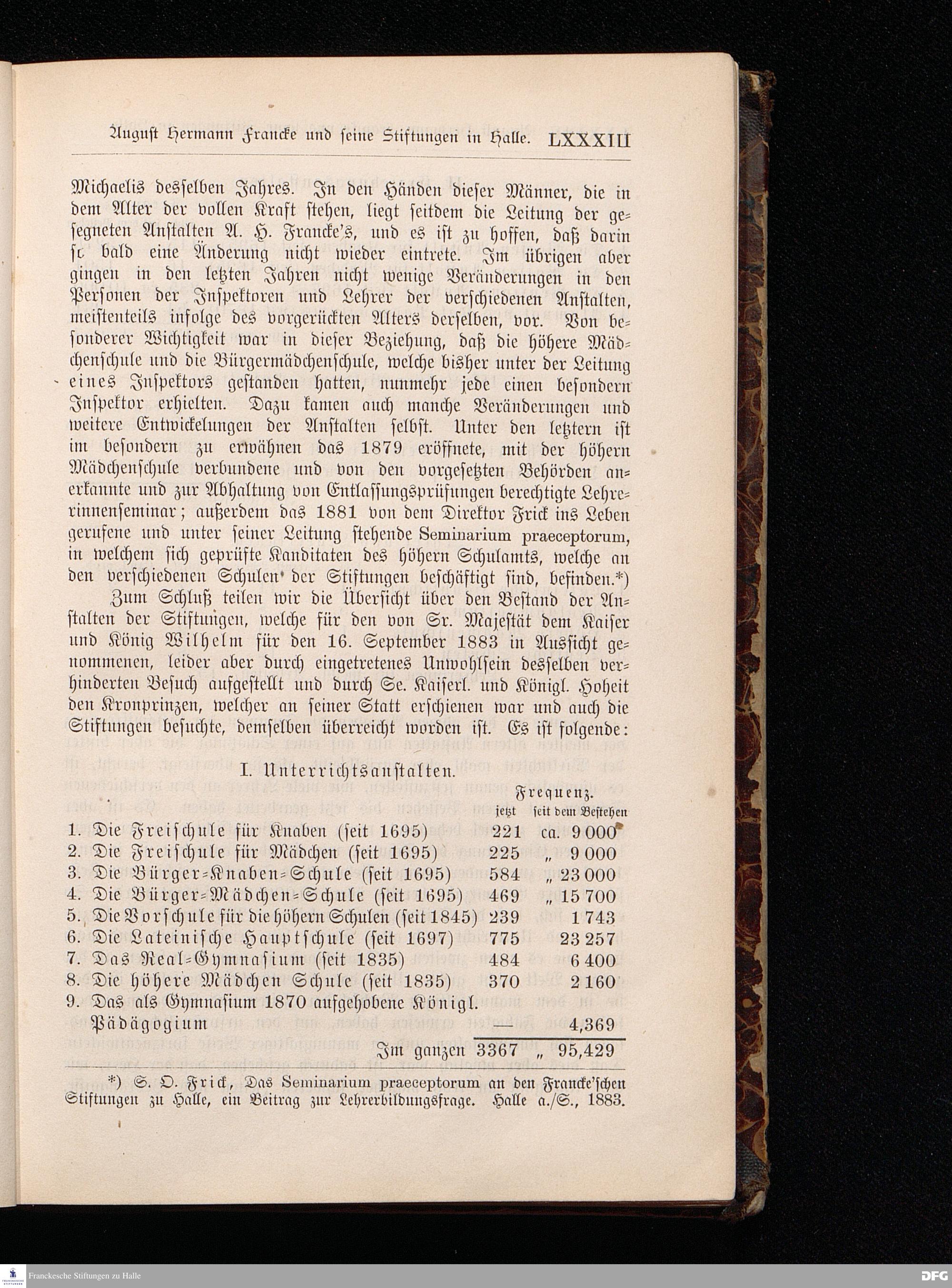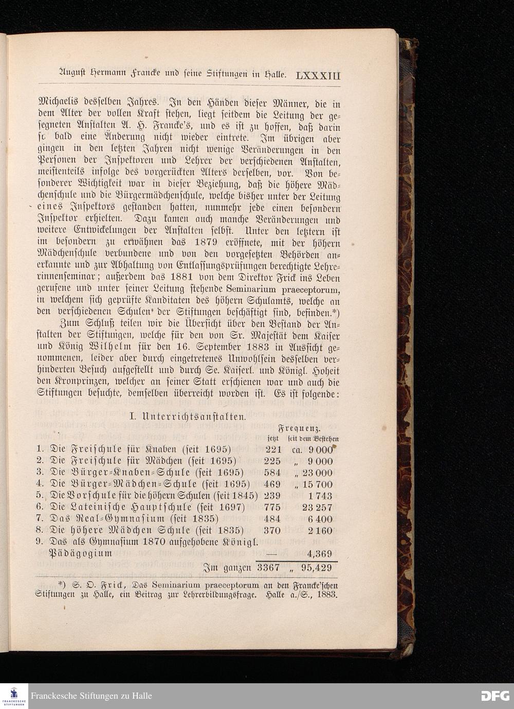 A.H.Francke's Pädagogische Schriften. Nebst der Darstellung seines Lebens und seiner Stiftungen herausgegeben von D. G[ustav] Kramer, Geh.Regierungsrat. Zweite, durchgesehene und vervollständigte Ausgabe. Langensalza, Druck und Verlag von Hermann Beyer & Söhne. 1885.