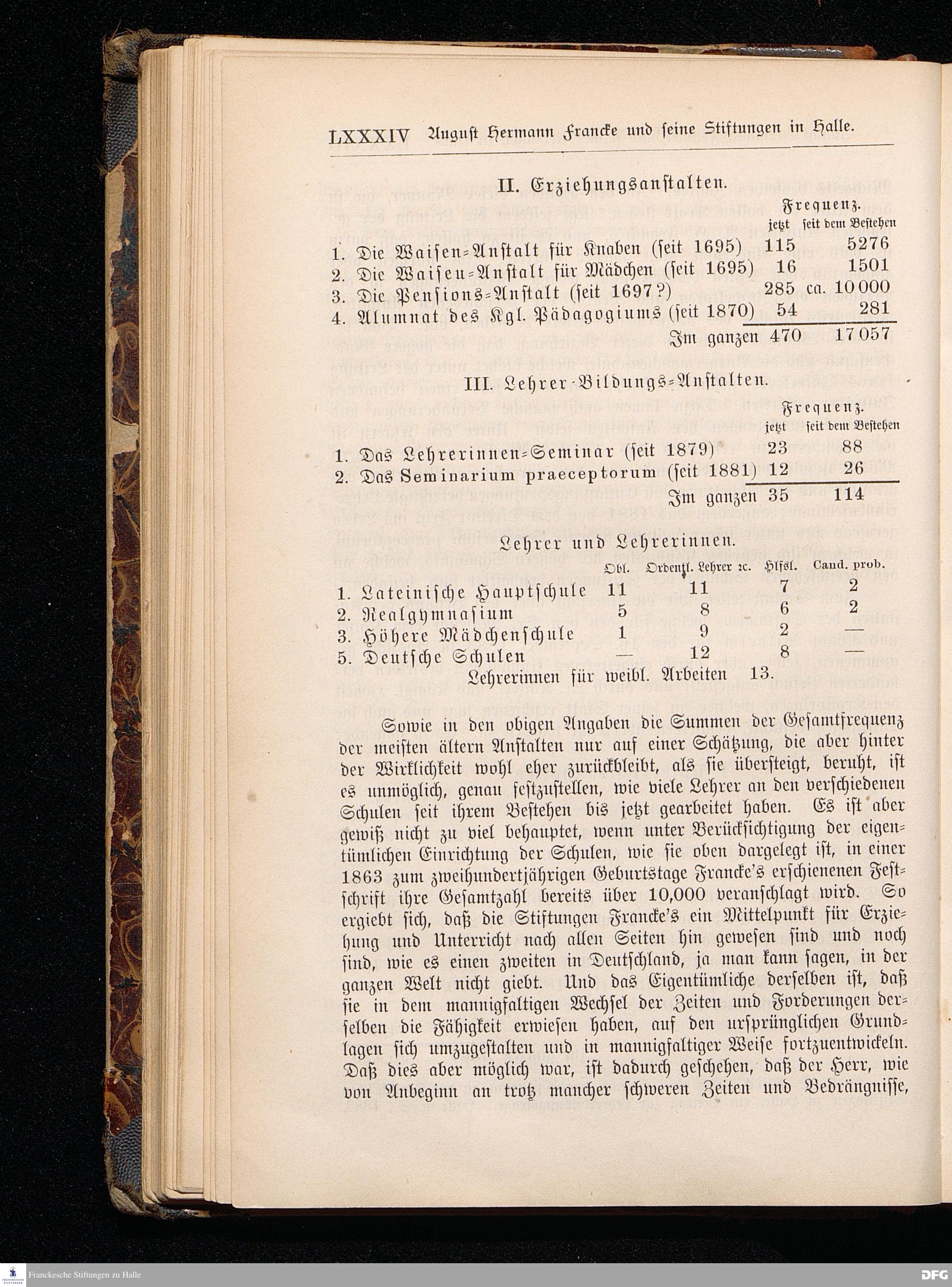 A.H.Francke's Pädagogische Schriften. Nebst der Darstellung seines Lebens und seiner Stiftungen herausgegeben von D. G[ustav] Kramer, Geh.Regierungsrat. Zweite, durchgesehene und vervollständigte Ausgabe. Langensalza, Druck und Verlag von Hermann Beyer & Söhne. 1885.
