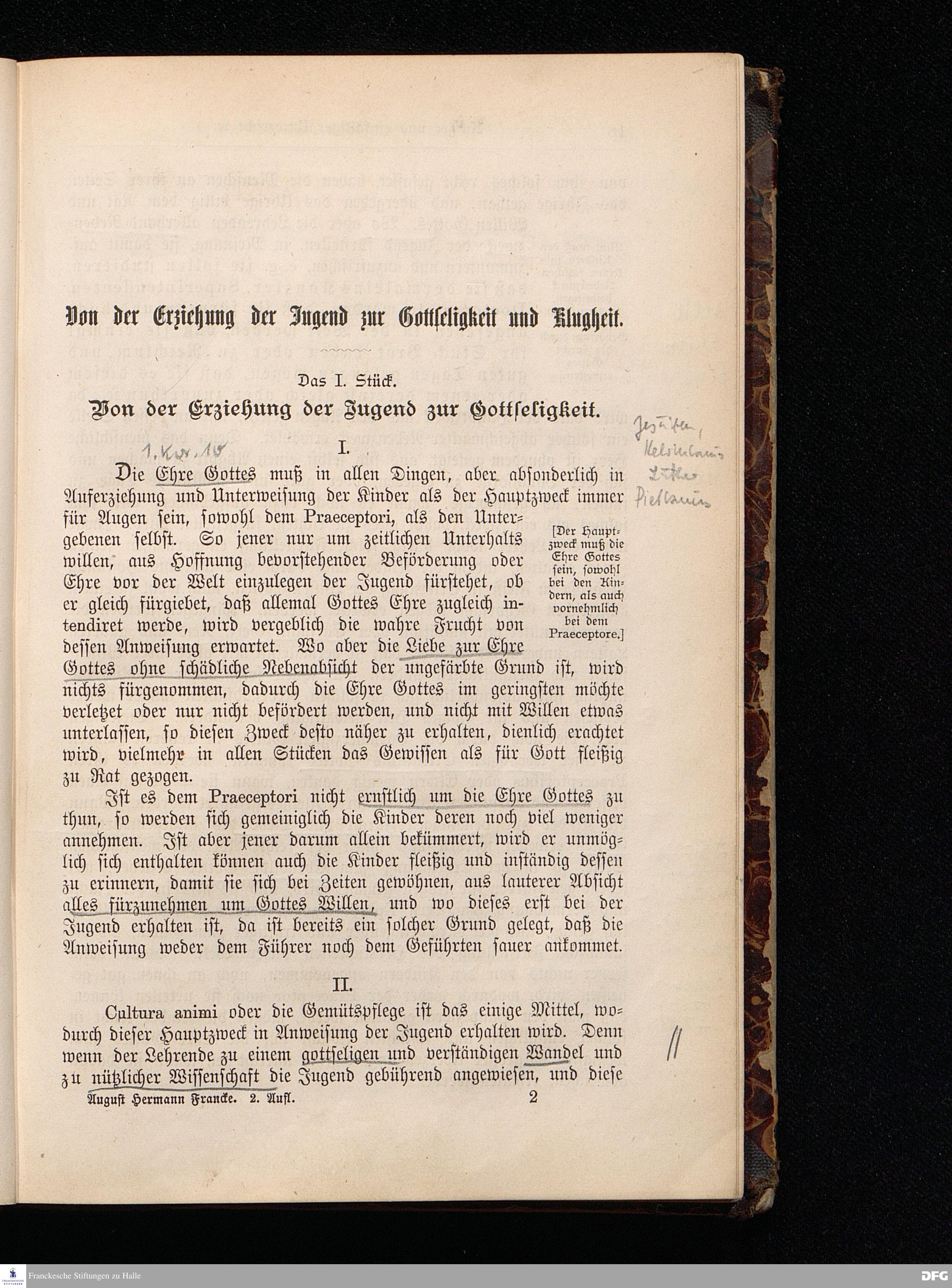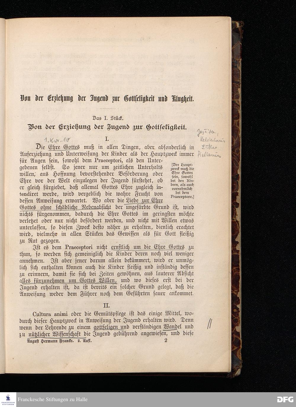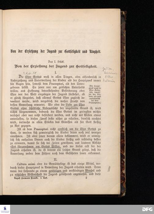 A.H.Francke's Pädagogische Schriften. Nebst der Darstellung seines Lebens und seiner Stiftungen herausgegeben von D. G[ustav] Kramer, Geh.Regierungsrat. Zweite, durchgesehene und vervollständigte Ausgabe. Langensalza, Druck und Verlag von Hermann Beyer & Söhne. 1885.