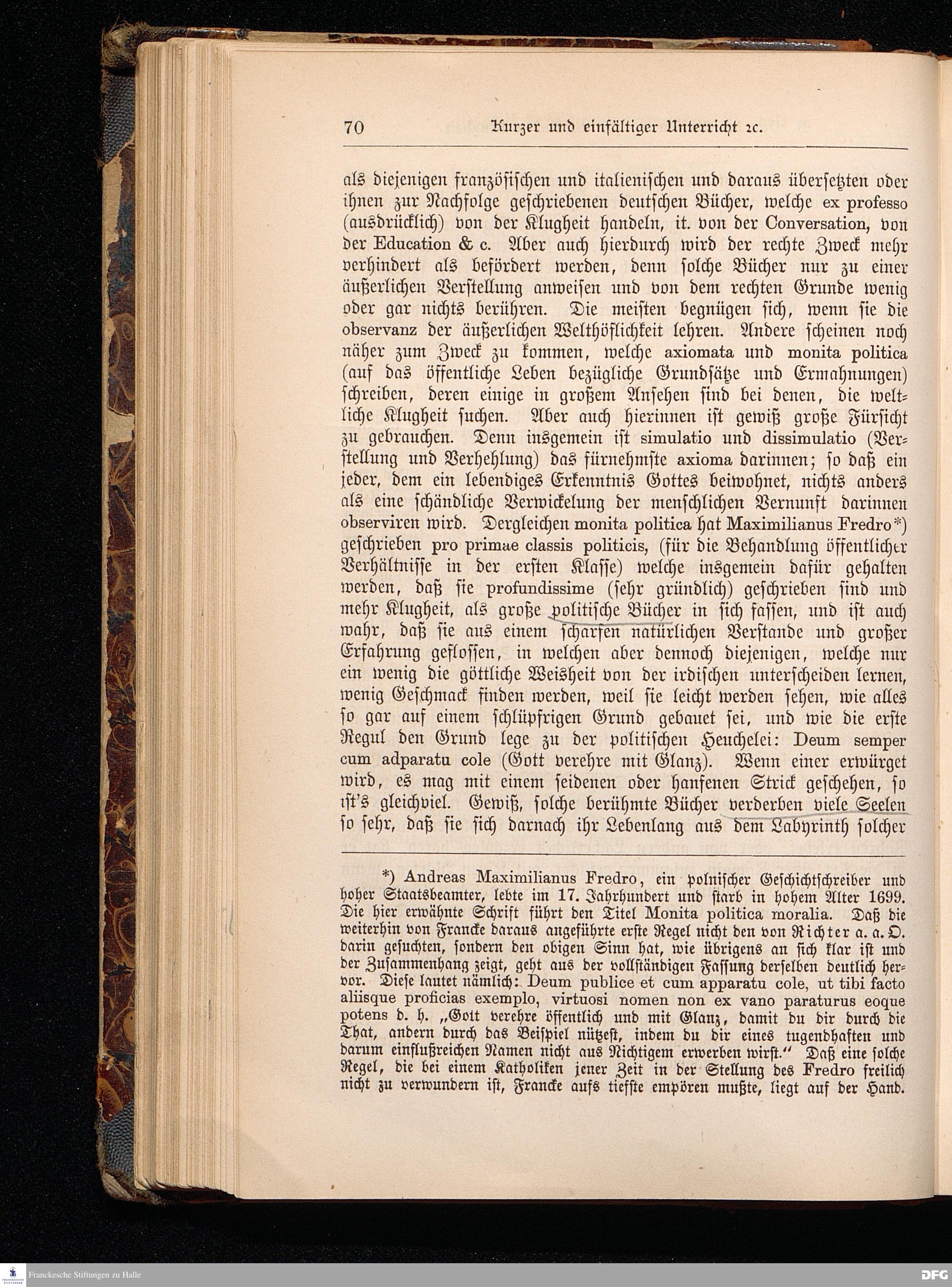 A.H.Francke's Pädagogische Schriften. Nebst der Darstellung seines Lebens und seiner Stiftungen herausgegeben von D. G[ustav] Kramer, Geh.Regierungsrat. Zweite, durchgesehene und vervollständigte Ausgabe. Langensalza, Druck und Verlag von Hermann Beyer & Söhne. 1885.
