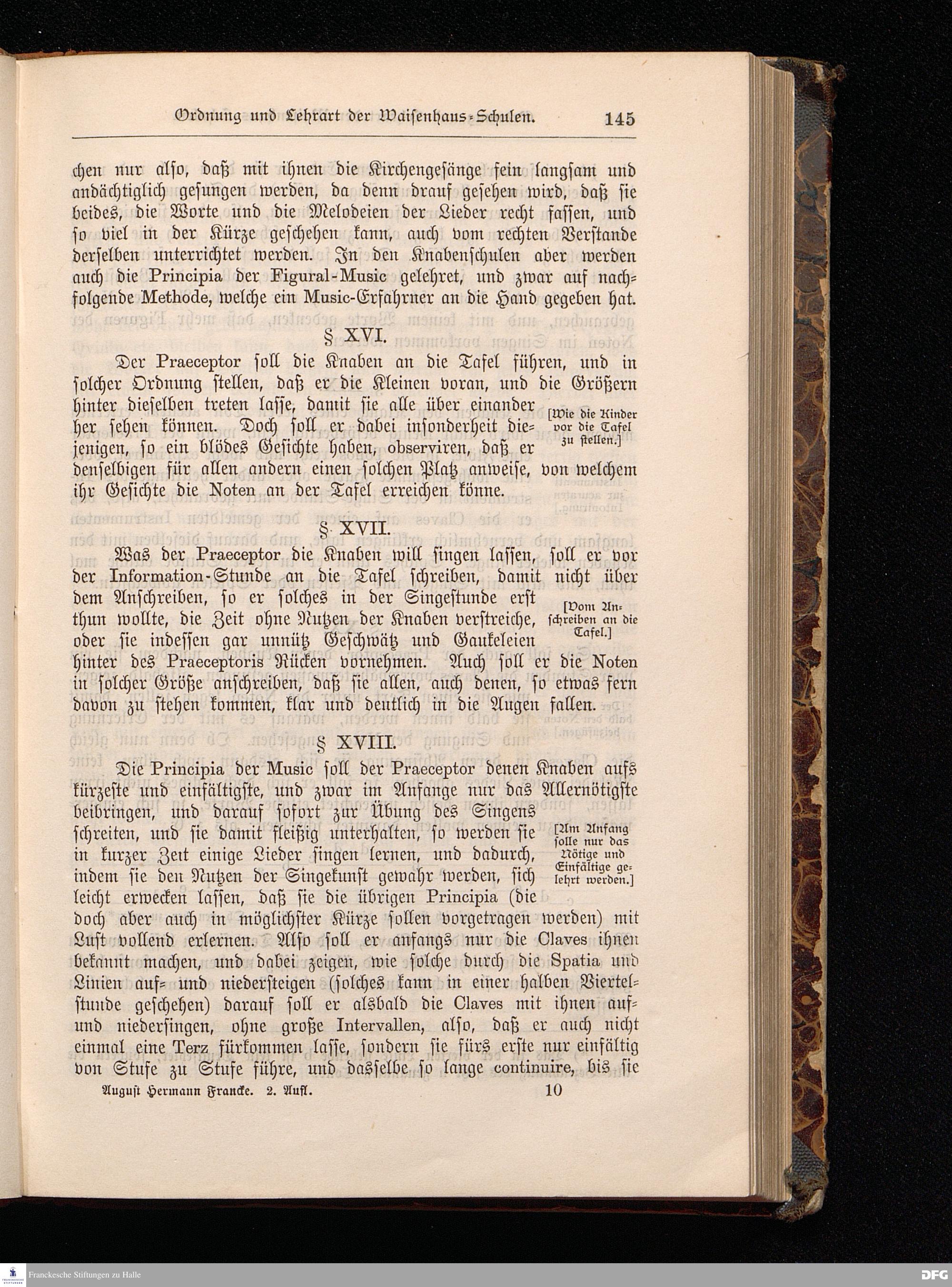 A.H.Francke's Pädagogische Schriften. Nebst der Darstellung seines Lebens und seiner Stiftungen herausgegeben von D. G[ustav] Kramer, Geh.Regierungsrat. Zweite, durchgesehene und vervollständigte Ausgabe. Langensalza, Druck und Verlag von Hermann Beyer & Söhne. 1885.