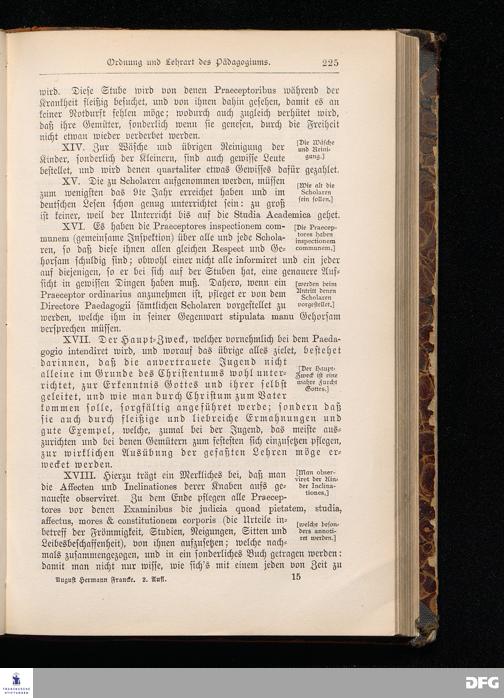 A.H.Francke's Pädagogische Schriften. Nebst der Darstellung seines Lebens und seiner Stiftungen herausgegeben von D. G[ustav] Kramer, Geh.Regierungsrat. Zweite, durchgesehene und vervollständigte Ausgabe. Langensalza, Druck und Verlag von Hermann Beyer & Söhne. 1885.