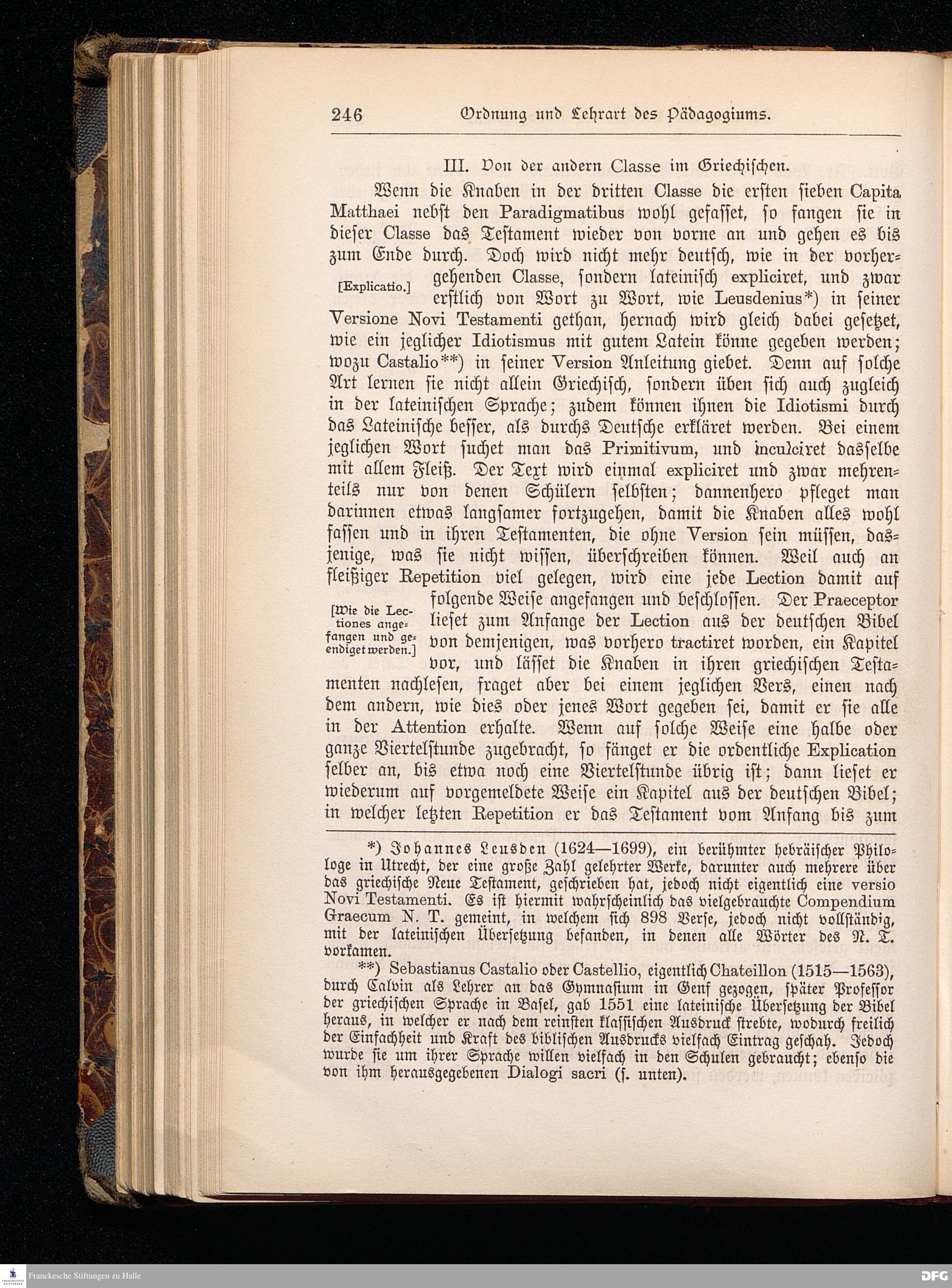 A.H.Francke's Pädagogische Schriften. Nebst der Darstellung seines Lebens und seiner Stiftungen herausgegeben von D. G[ustav] Kramer, Geh.Regierungsrat. Zweite, durchgesehene und vervollständigte Ausgabe. Langensalza, Druck und Verlag von Hermann Beyer & Söhne. 1885.