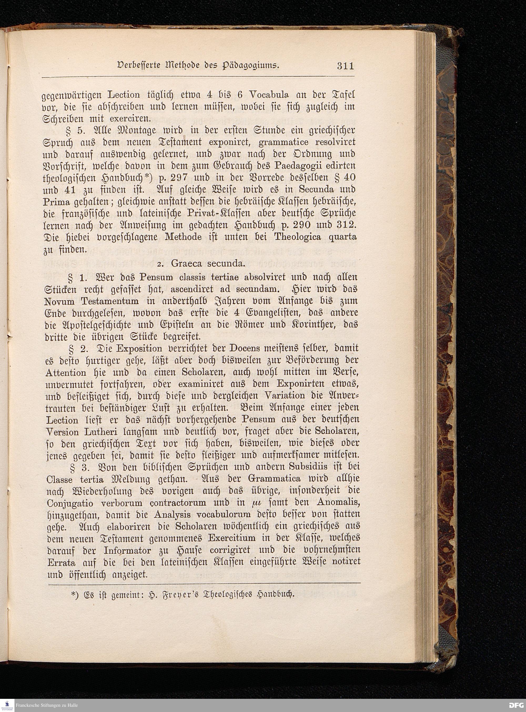 A.H.Francke's Pädagogische Schriften. Nebst der Darstellung seines Lebens und seiner Stiftungen herausgegeben von D. G[ustav] Kramer, Geh.Regierungsrat. Zweite, durchgesehene und vervollständigte Ausgabe. Langensalza, Druck und Verlag von Hermann Beyer & Söhne. 1885.