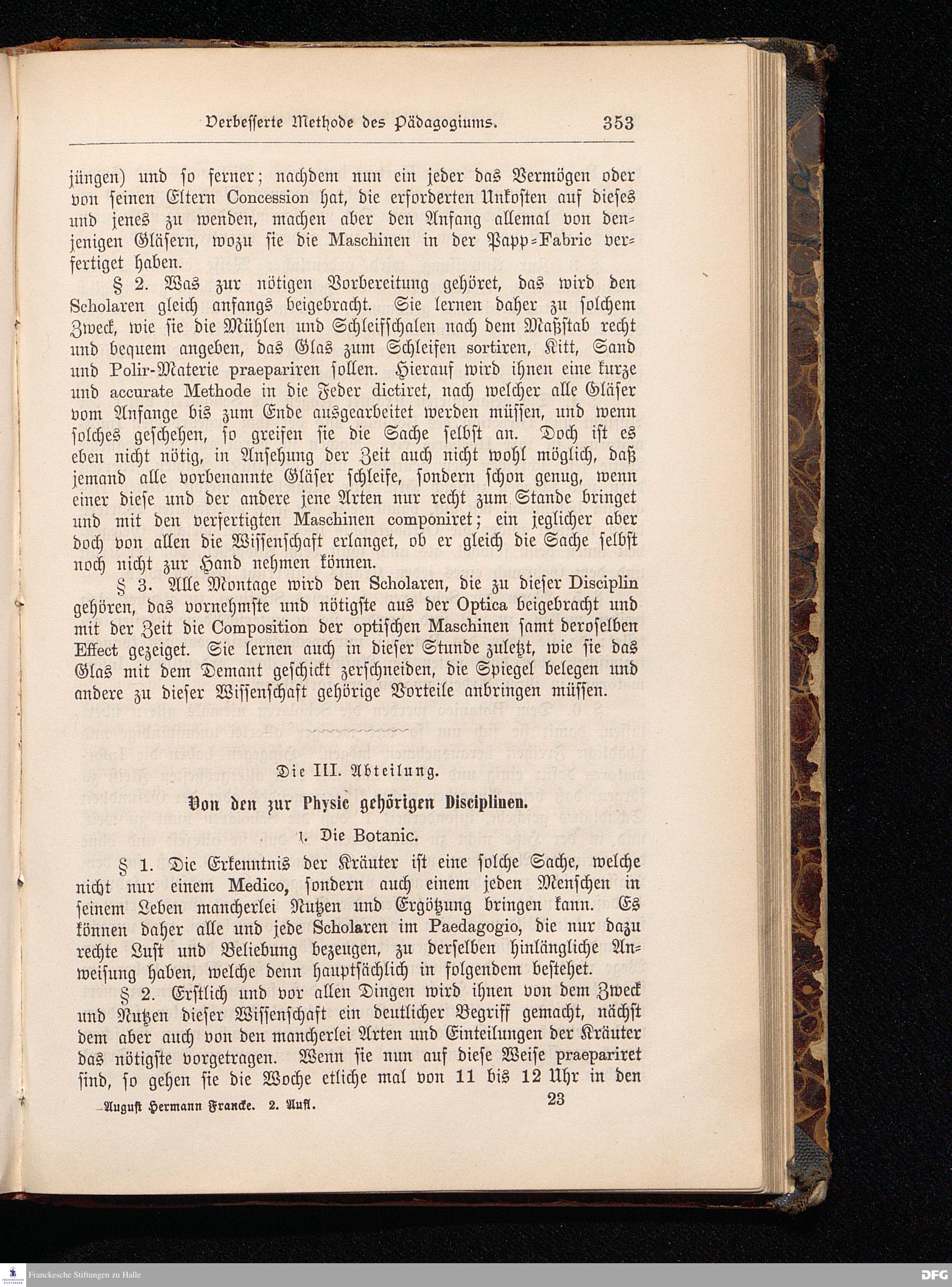 A.H.Francke's Pädagogische Schriften. Nebst der Darstellung seines Lebens und seiner Stiftungen herausgegeben von D. G[ustav] Kramer, Geh.Regierungsrat. Zweite, durchgesehene und vervollständigte Ausgabe. Langensalza, Druck und Verlag von Hermann Beyer & Söhne. 1885.