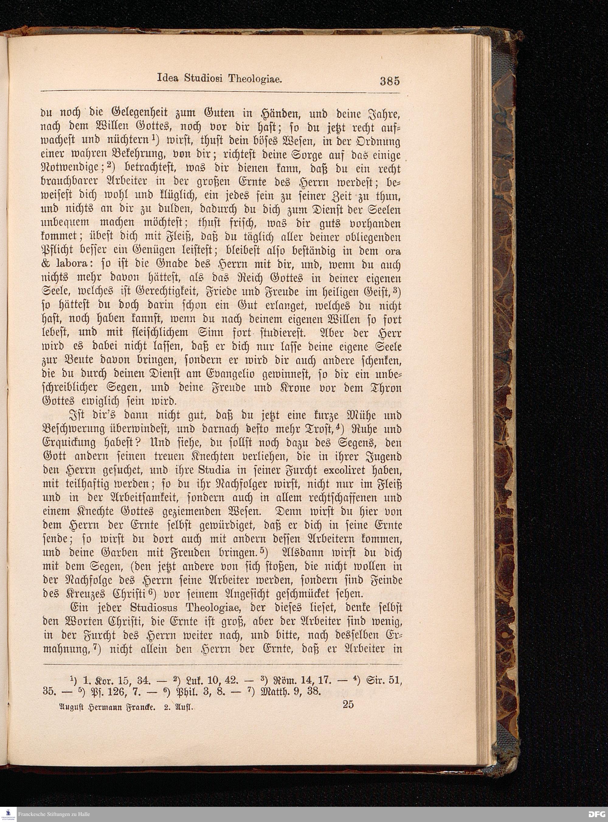 A.H.Francke's Pädagogische Schriften. Nebst der Darstellung seines Lebens und seiner Stiftungen herausgegeben von D. G[ustav] Kramer, Geh.Regierungsrat. Zweite, durchgesehene und vervollständigte Ausgabe. Langensalza, Druck und Verlag von Hermann Beyer & Söhne. 1885.