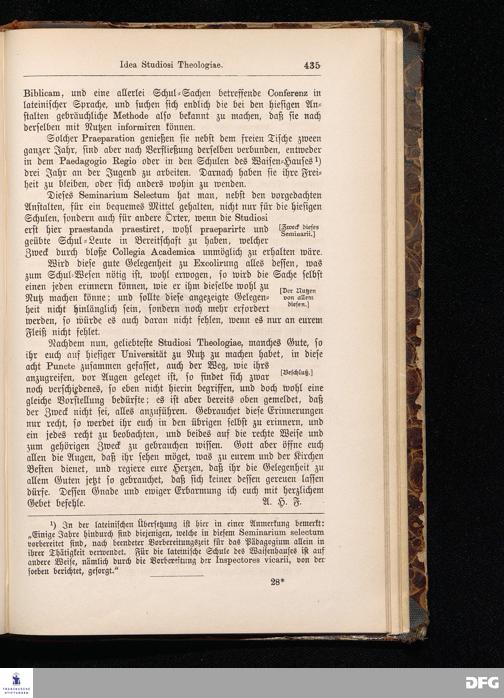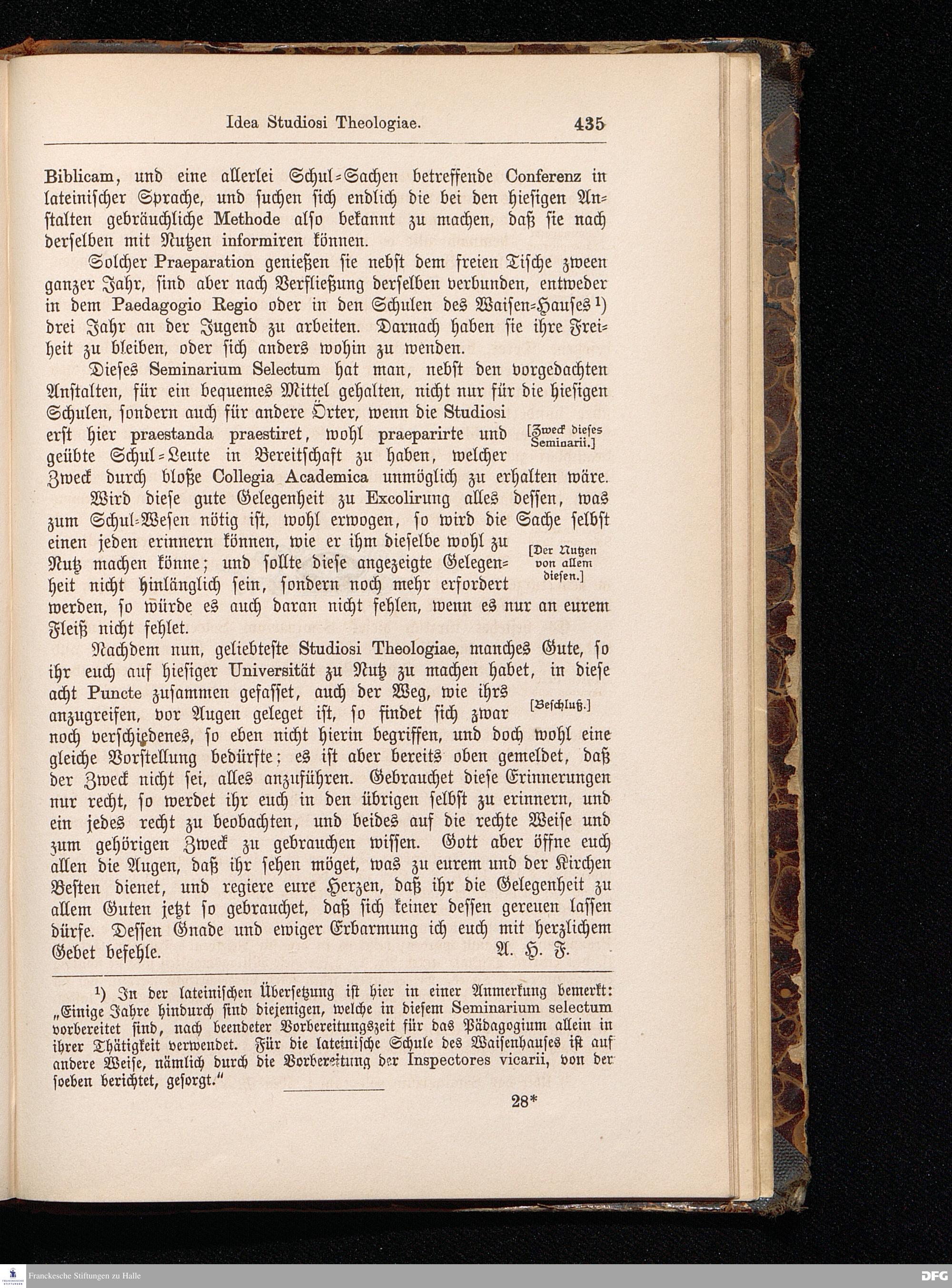 A.H.Francke's Pädagogische Schriften. Nebst der Darstellung seines Lebens und seiner Stiftungen herausgegeben von D. G[ustav] Kramer, Geh.Regierungsrat. Zweite, durchgesehene und vervollständigte Ausgabe. Langensalza, Druck und Verlag von Hermann Beyer & Söhne. 1885.