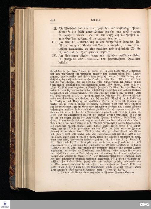 A.H.Francke's Pädagogische Schriften. Nebst der Darstellung seines Lebens und seiner Stiftungen herausgegeben von D. G[ustav] Kramer, Geh.Regierungsrat. Zweite, durchgesehene und vervollständigte Ausgabe. Langensalza, Druck und Verlag von Hermann Beyer & Söhne. 1885.
