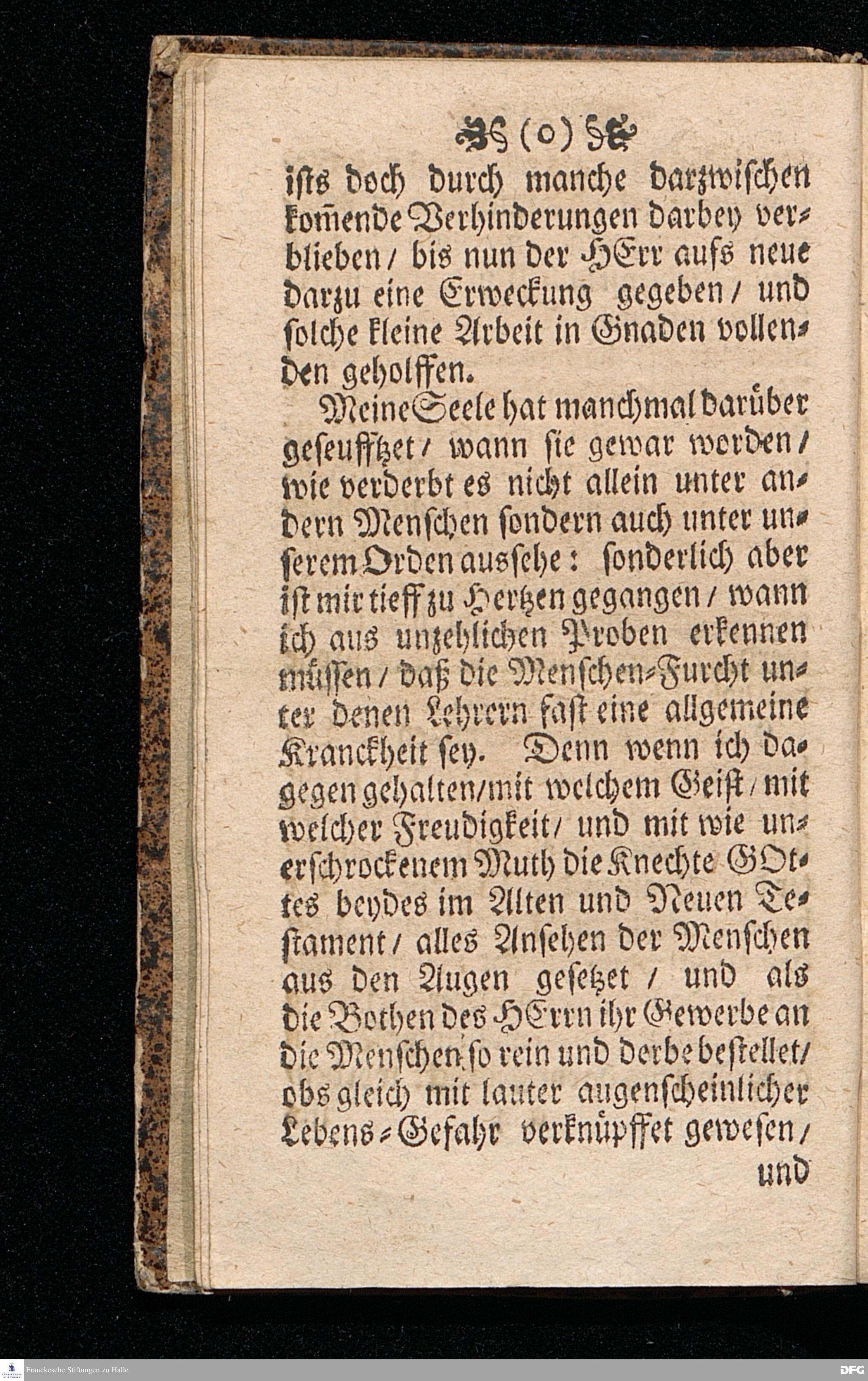 NICODEMUS Oder Tractätlein von der Menschen=Furcht / Deren Beschreibung / Ursachen / Kennzeichen, Schaden, Bemäntelung, dagegen geordneten Mitteln, und wie zu einem freudigen Glauben zu gelangen, und derselbe weislich und nützlich zu gebrauchen, Zu Pflantzung Der wahren Furcht GOttes / In allen Ständen heilsam / besonders aber Dem Lehr=Stande dediciret von August Hermann Francken / SS.Th.Pr.O.& Past.zu St.Ulrich in Halle. vierte Edition. HALLE, gedruckt im Waysenhause MDCCXV.