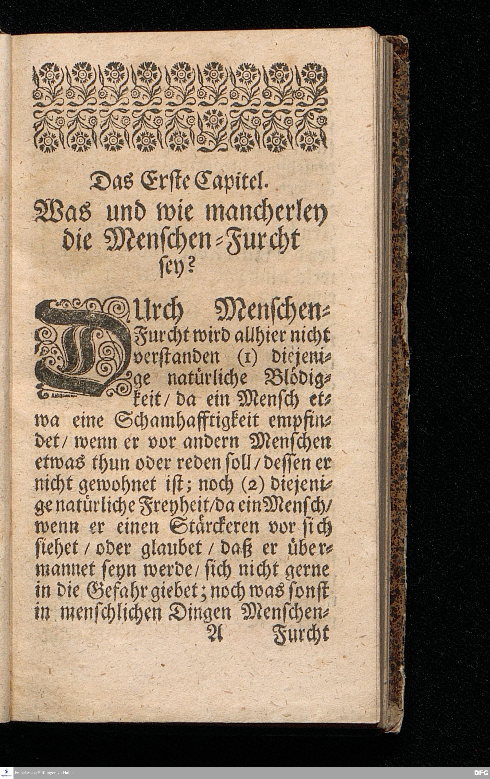 NICODEMUS Oder Tractätlein von der Menschen=Furcht / Deren Beschreibung / Ursachen / Kennzeichen, Schaden, Bemäntelung, dagegen geordneten Mitteln, und wie zu einem freudigen Glauben zu gelangen, und derselbe weislich und nützlich zu gebrauchen, Zu Pflantzung Der wahren Furcht GOttes / In allen Ständen heilsam / besonders aber Dem Lehr=Stande dediciret von August Hermann Francken / SS.Th.Pr.O.& Past.zu St.Ulrich in Halle. vierte Edition. HALLE, gedruckt im Waysenhause MDCCXV.