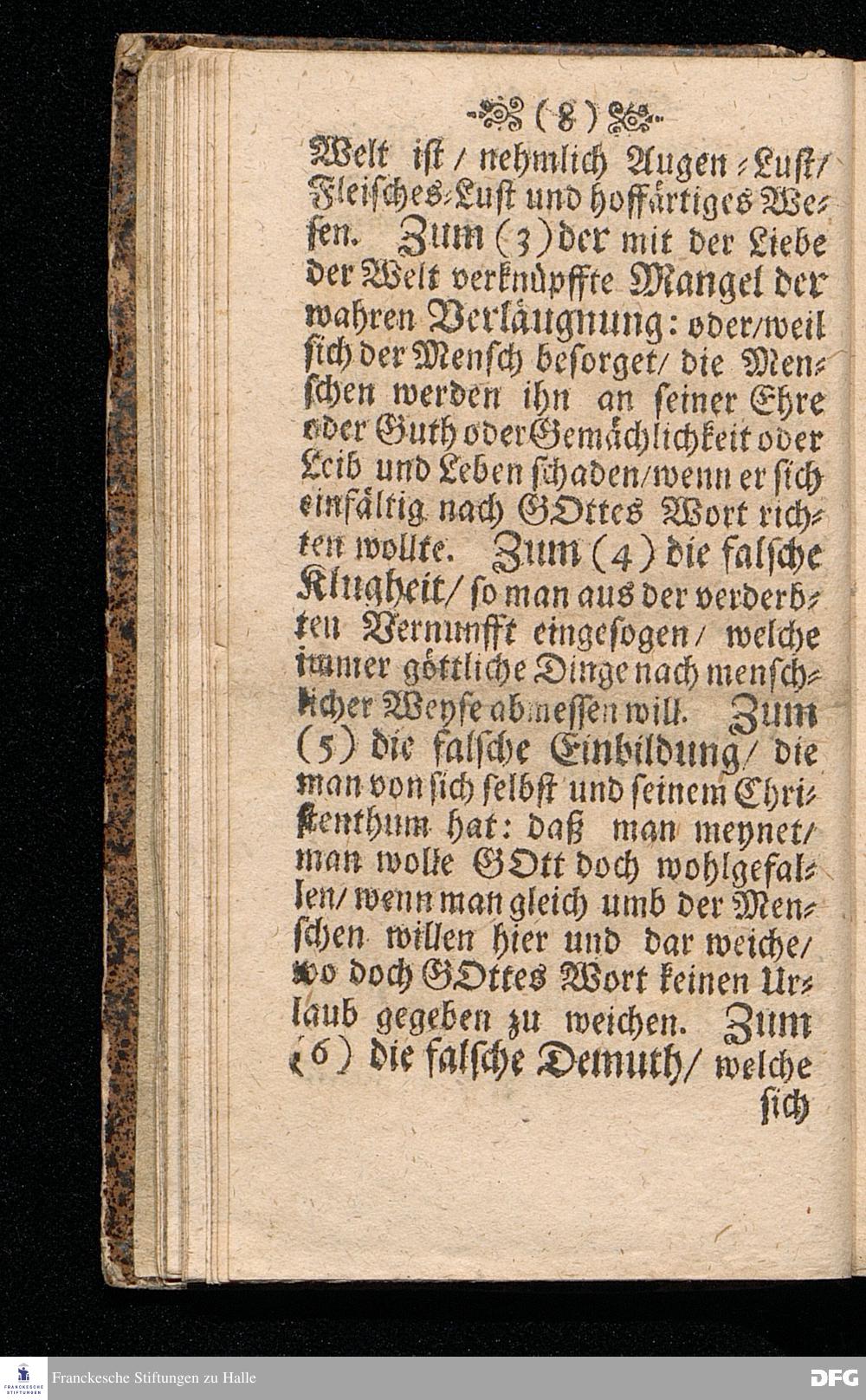 NICODEMUS Oder Tractätlein von der Menschen=Furcht / Deren Beschreibung / Ursachen / Kennzeichen, Schaden, Bemäntelung, dagegen geordneten Mitteln, und wie zu einem freudigen Glauben zu gelangen, und derselbe weislich und nützlich zu gebrauchen, Zu Pflantzung Der wahren Furcht GOttes / In allen Ständen heilsam / besonders aber Dem Lehr=Stande dediciret von August Hermann Francken / SS.Th.Pr.O.& Past.zu St.Ulrich in Halle. vierte Edition. HALLE, gedruckt im Waysenhause MDCCXV.