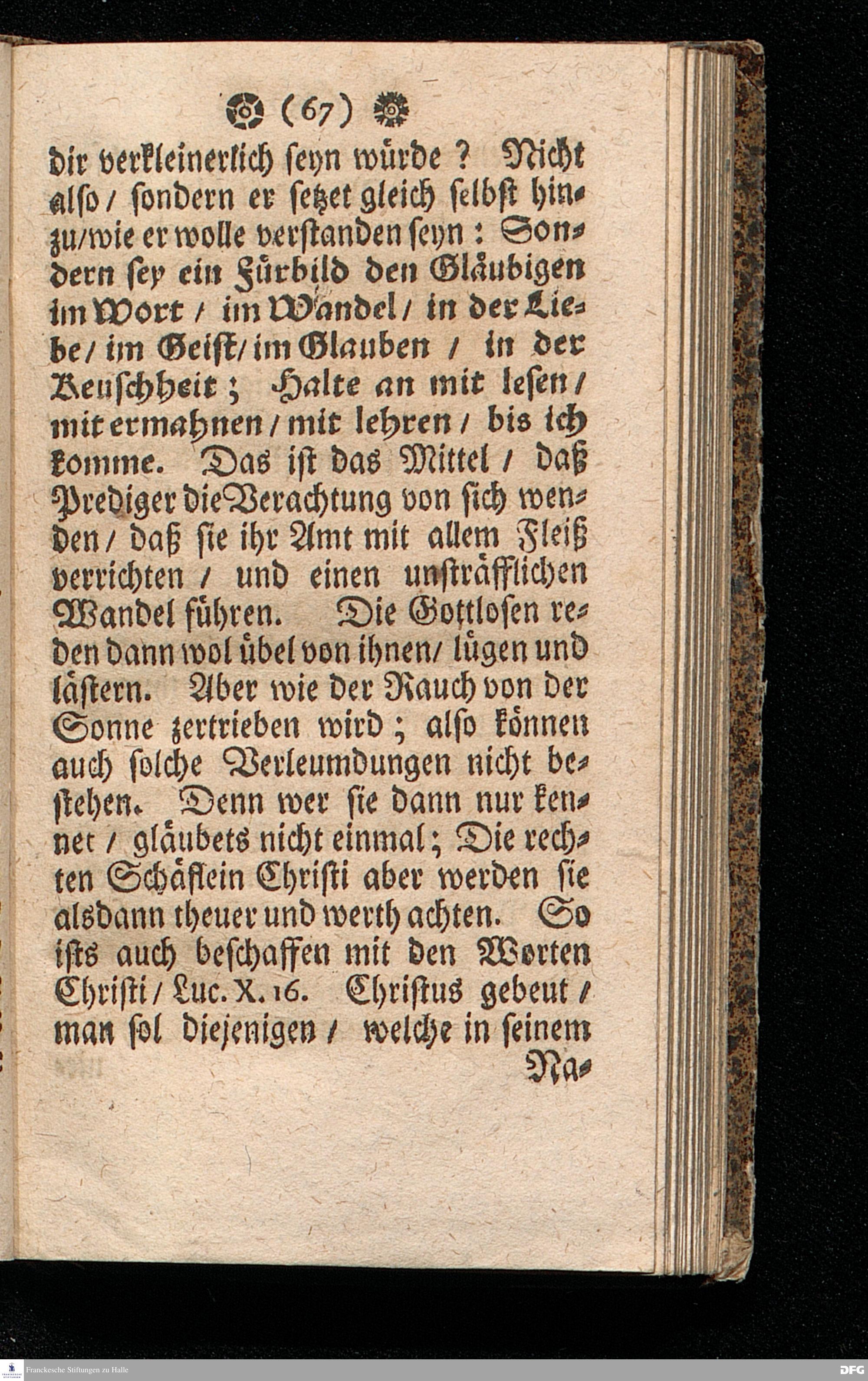 NICODEMUS Oder Tractätlein von der Menschen=Furcht / Deren Beschreibung / Ursachen / Kennzeichen, Schaden, Bemäntelung, dagegen geordneten Mitteln, und wie zu einem freudigen Glauben zu gelangen, und derselbe weislich und nützlich zu gebrauchen, Zu Pflantzung Der wahren Furcht GOttes / In allen Ständen heilsam / besonders aber Dem Lehr=Stande dediciret von August Hermann Francken / SS.Th.Pr.O.& Past.zu St.Ulrich in Halle. vierte Edition. HALLE, gedruckt im Waysenhause MDCCXV.