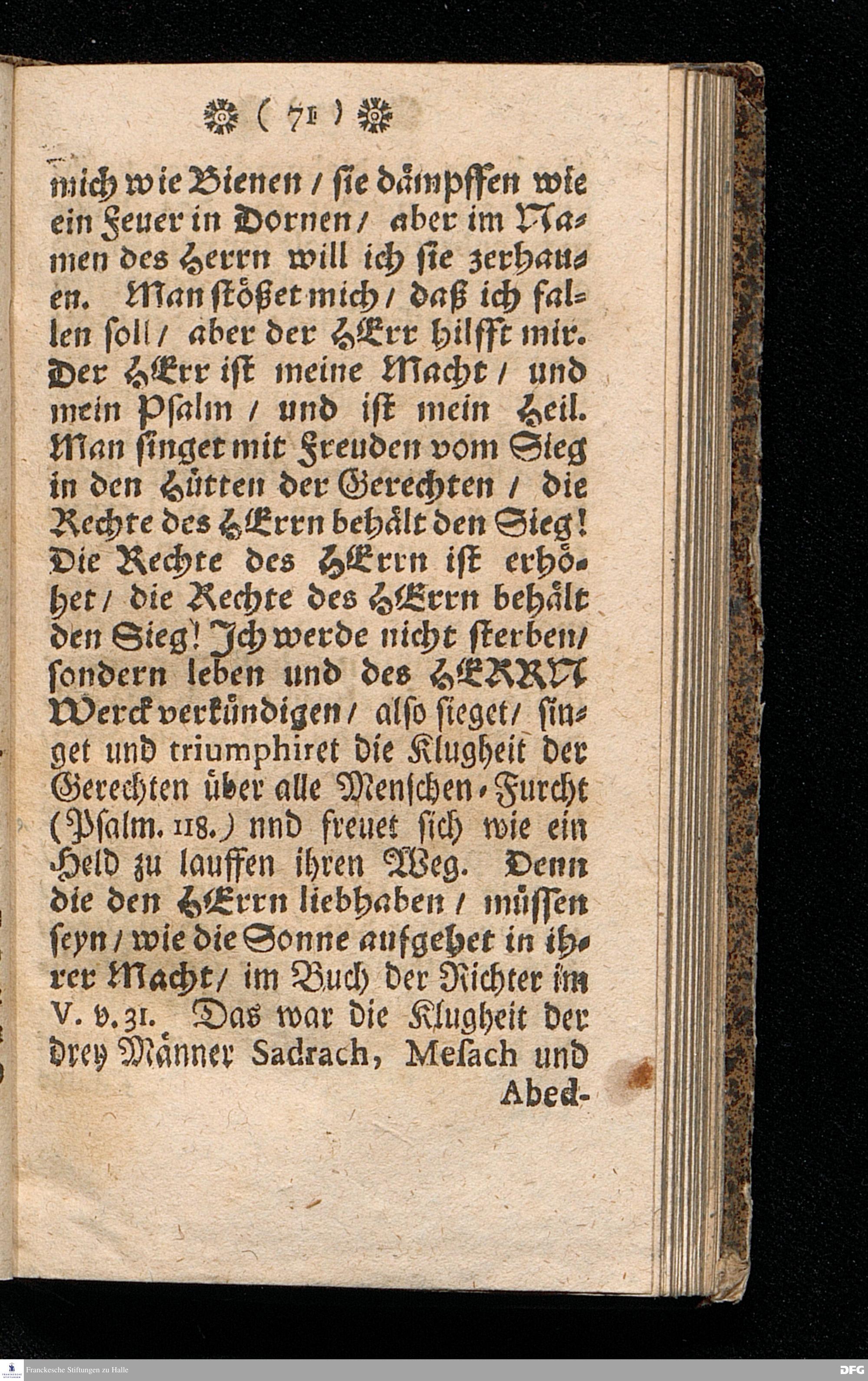 NICODEMUS Oder Tractätlein von der Menschen=Furcht / Deren Beschreibung / Ursachen / Kennzeichen, Schaden, Bemäntelung, dagegen geordneten Mitteln, und wie zu einem freudigen Glauben zu gelangen, und derselbe weislich und nützlich zu gebrauchen, Zu Pflantzung Der wahren Furcht GOttes / In allen Ständen heilsam / besonders aber Dem Lehr=Stande dediciret von August Hermann Francken / SS.Th.Pr.O.& Past.zu St.Ulrich in Halle. vierte Edition. HALLE, gedruckt im Waysenhause MDCCXV.