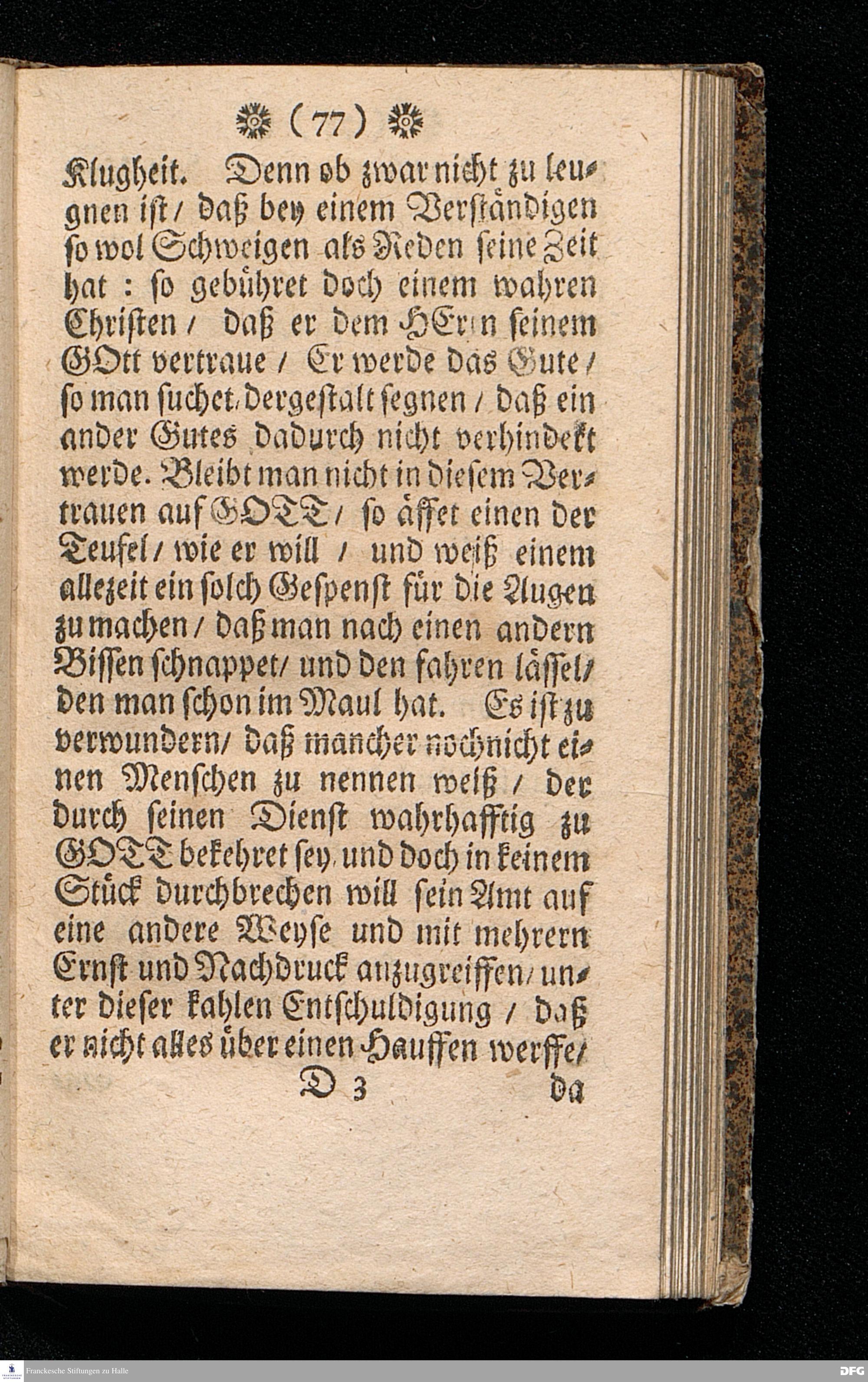 NICODEMUS Oder Tractätlein von der Menschen=Furcht / Deren Beschreibung / Ursachen / Kennzeichen, Schaden, Bemäntelung, dagegen geordneten Mitteln, und wie zu einem freudigen Glauben zu gelangen, und derselbe weislich und nützlich zu gebrauchen, Zu Pflantzung Der wahren Furcht GOttes / In allen Ständen heilsam / besonders aber Dem Lehr=Stande dediciret von August Hermann Francken / SS.Th.Pr.O.& Past.zu St.Ulrich in Halle. vierte Edition. HALLE, gedruckt im Waysenhause MDCCXV.