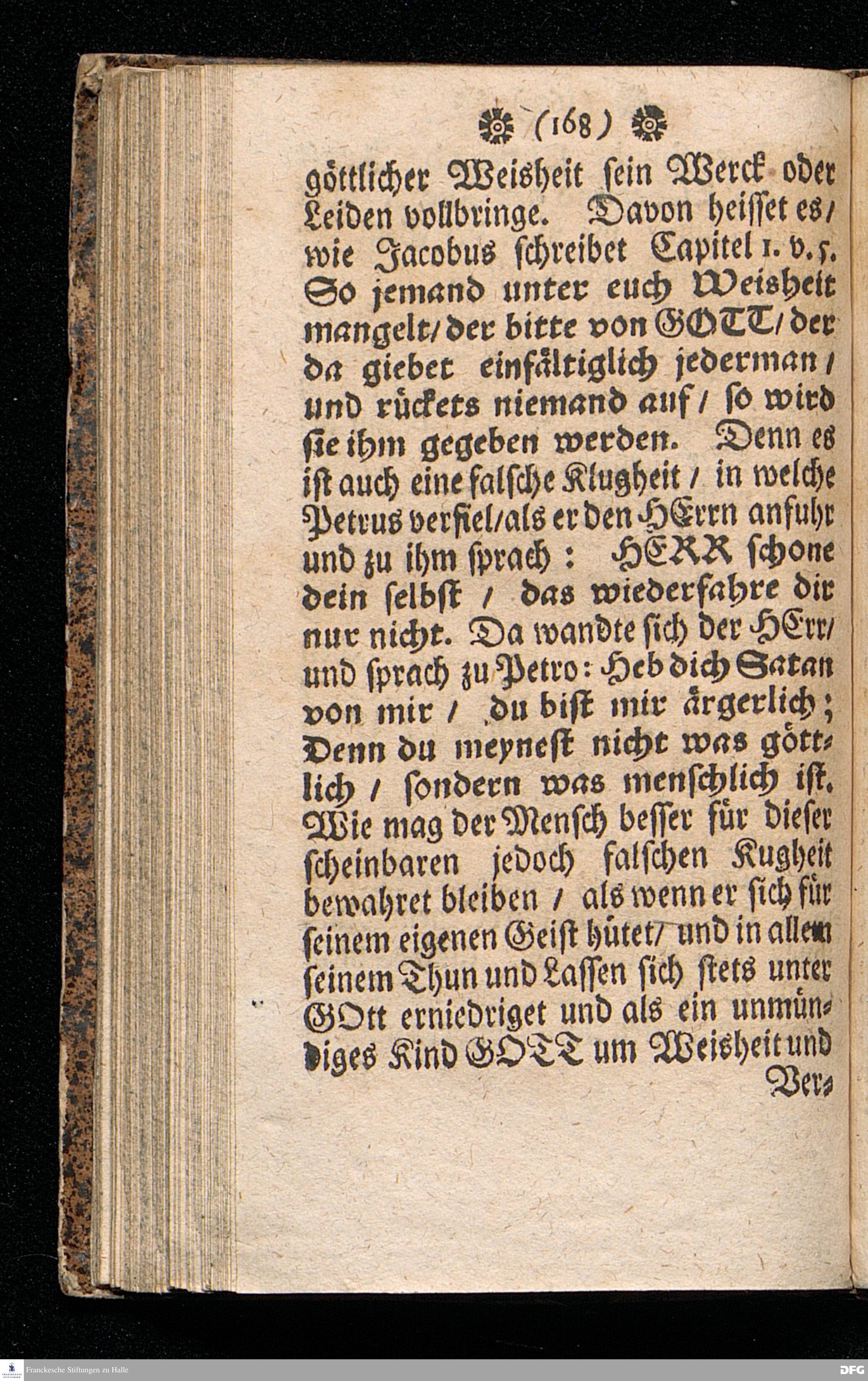 NICODEMUS Oder Tractätlein von der Menschen=Furcht / Deren Beschreibung / Ursachen / Kennzeichen, Schaden, Bemäntelung, dagegen geordneten Mitteln, und wie zu einem freudigen Glauben zu gelangen, und derselbe weislich und nützlich zu gebrauchen, Zu Pflantzung Der wahren Furcht GOttes / In allen Ständen heilsam / besonders aber Dem Lehr=Stande dediciret von August Hermann Francken / SS.Th.Pr.O.& Past.zu St.Ulrich in Halle. vierte Edition. HALLE, gedruckt im Waysenhause MDCCXV.