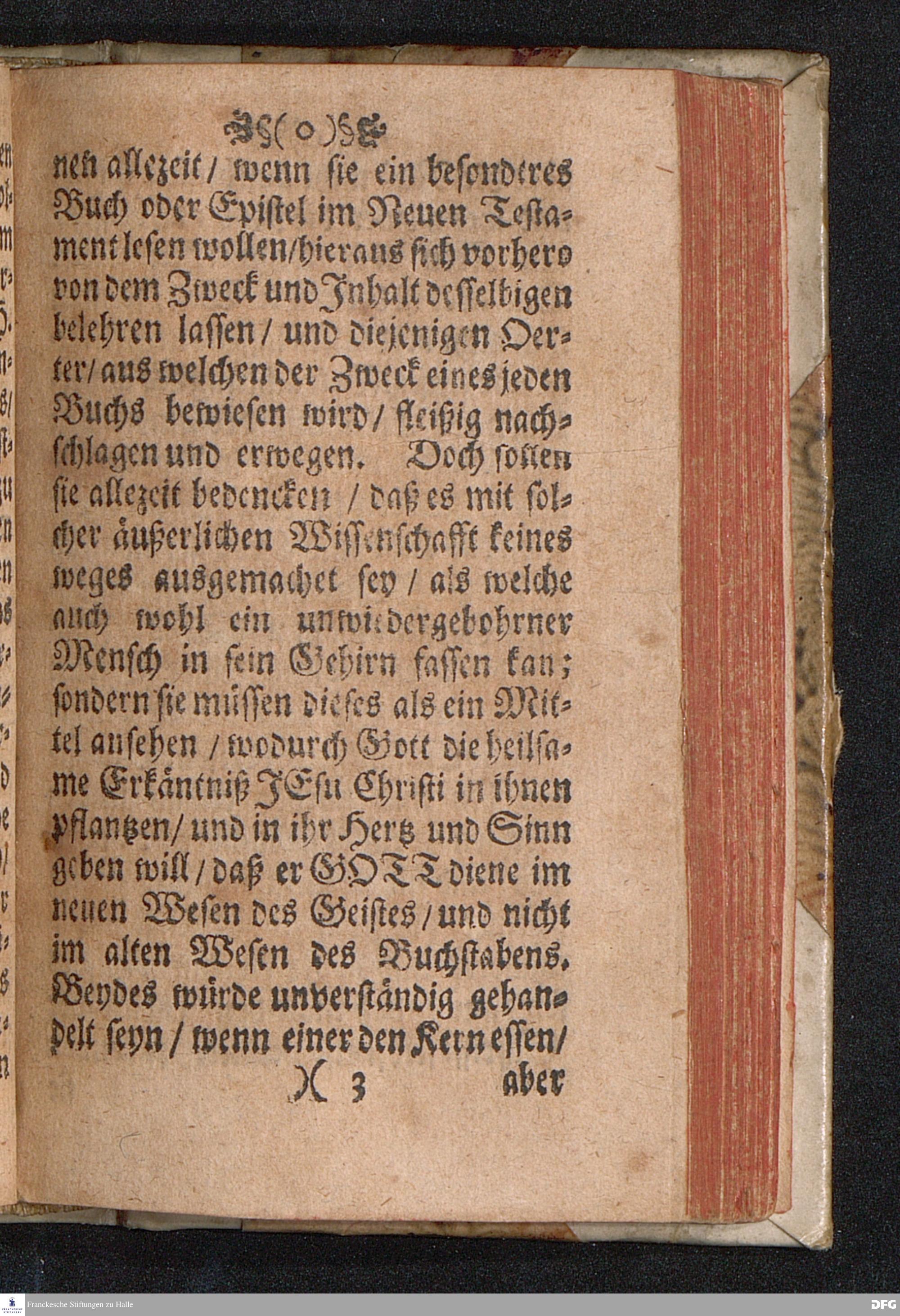 M. Aug. Hermann Franckens Gr.& Or.Lingg.P.P. & P.Glauch. Einleitung Zur Lesung Der H. Schrifft / Insonderheit Des Neuen Testaments. I. Für Ungelehrte u.Einfältige. II.Für Studiosos Theologiæ. III.Für Catechisirende. Darinnen Der Zweck und Inhalt der gantzen H.Schrifft / Fürnemlich aller und jeden Bücher Neues Testaments / und wie derselbe zur rechten Gründung in der Christlichen Lehre und Gottseligkeit anzuwenden sey / deutlich gezeiget wird. Halle / Gedruckt bey Christoph Salfelden. 1694.