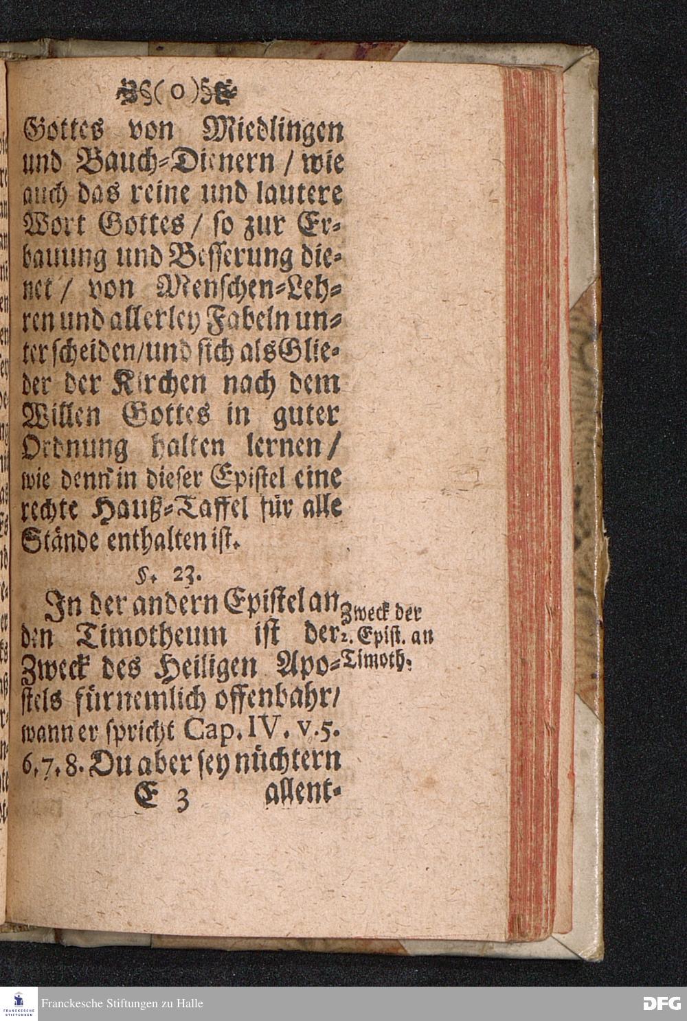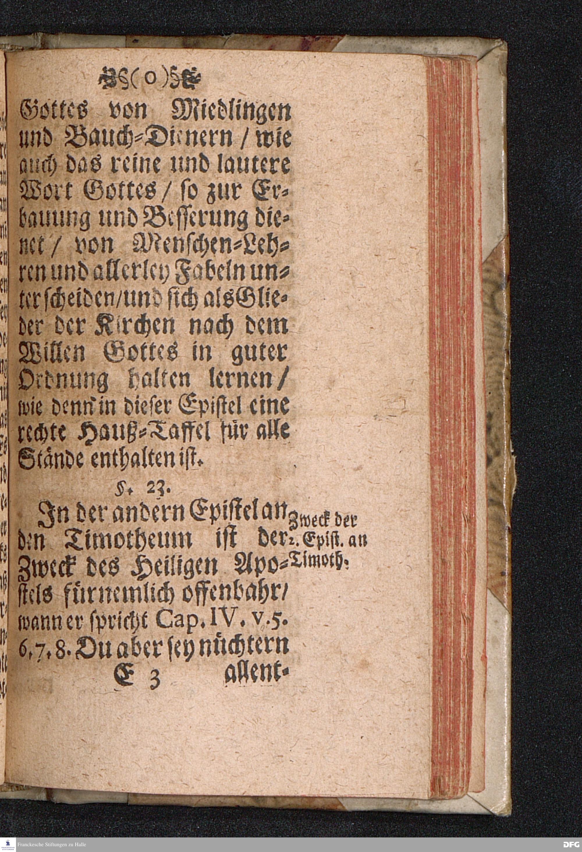 M. Aug. Hermann Franckens Gr.& Or.Lingg.P.P. & P.Glauch. Einleitung Zur Lesung Der H. Schrifft / Insonderheit Des Neuen Testaments. I. Für Ungelehrte u.Einfältige. II.Für Studiosos Theologiæ. III.Für Catechisirende. Darinnen Der Zweck und Inhalt der gantzen H.Schrifft / Fürnemlich aller und jeden Bücher Neues Testaments / und wie derselbe zur rechten Gründung in der Christlichen Lehre und Gottseligkeit anzuwenden sey / deutlich gezeiget wird. Halle / Gedruckt bey Christoph Salfelden. 1694.