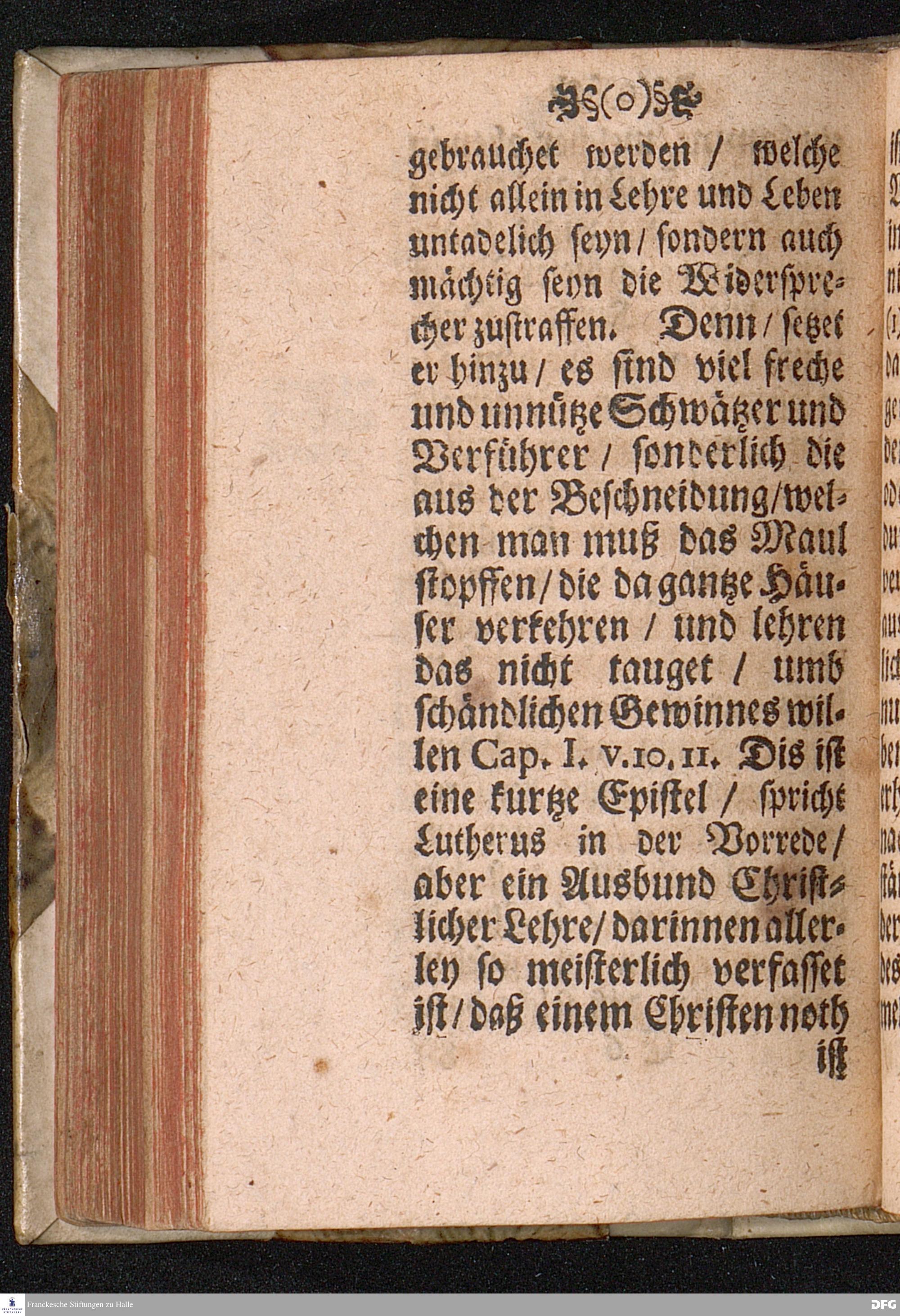 M. Aug. Hermann Franckens Gr.& Or.Lingg.P.P. & P.Glauch. Einleitung Zur Lesung Der H. Schrifft / Insonderheit Des Neuen Testaments. I. Für Ungelehrte u.Einfältige. II.Für Studiosos Theologiæ. III.Für Catechisirende. Darinnen Der Zweck und Inhalt der gantzen H.Schrifft / Fürnemlich aller und jeden Bücher Neues Testaments / und wie derselbe zur rechten Gründung in der Christlichen Lehre und Gottseligkeit anzuwenden sey / deutlich gezeiget wird. Halle / Gedruckt bey Christoph Salfelden. 1694.